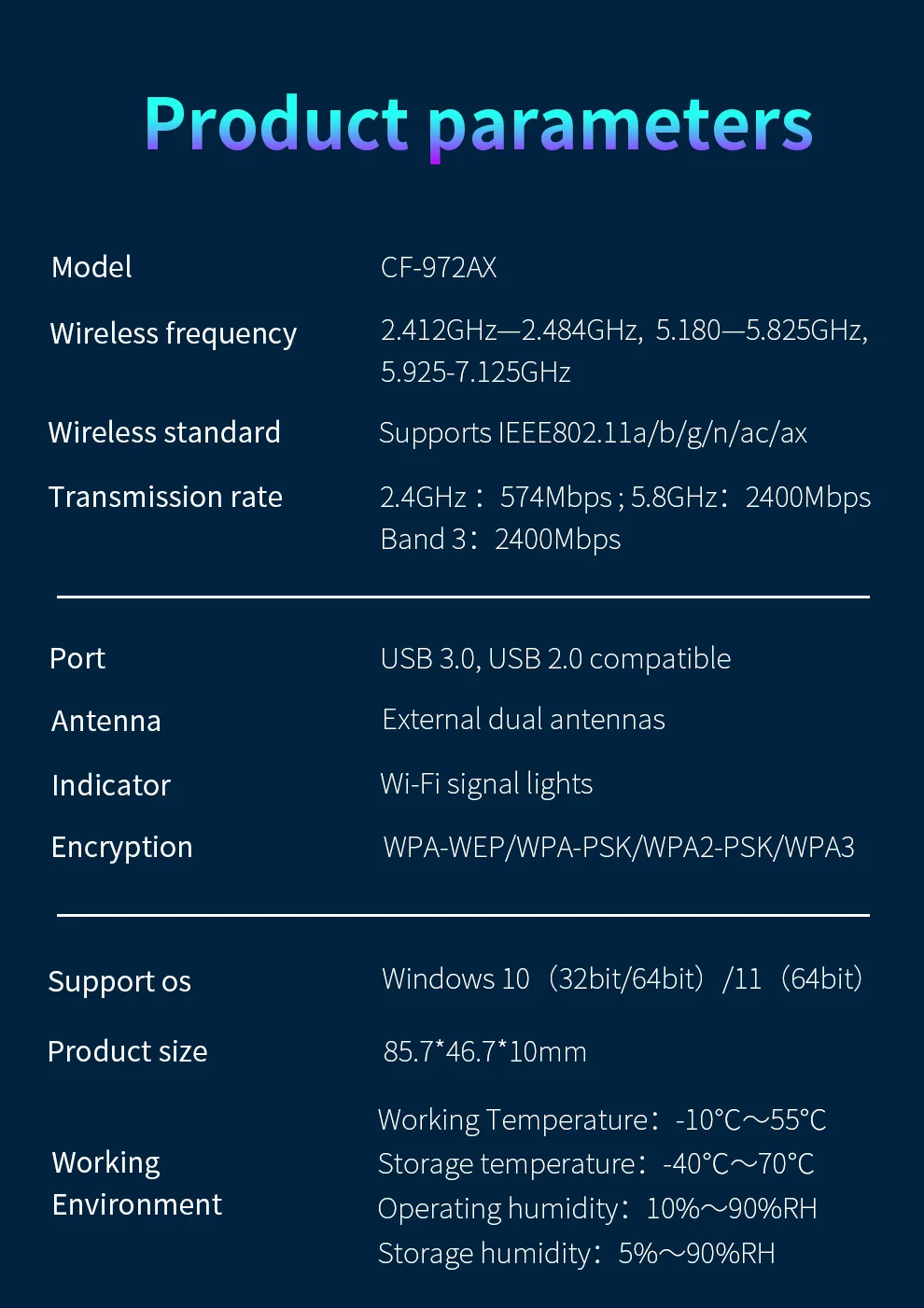 Controlador incorporado, conecte CF-983BE al puerto USB de la computadora para instalarlo, conectarlo y usar automáticamente, lo que facilita el acceso a Internet