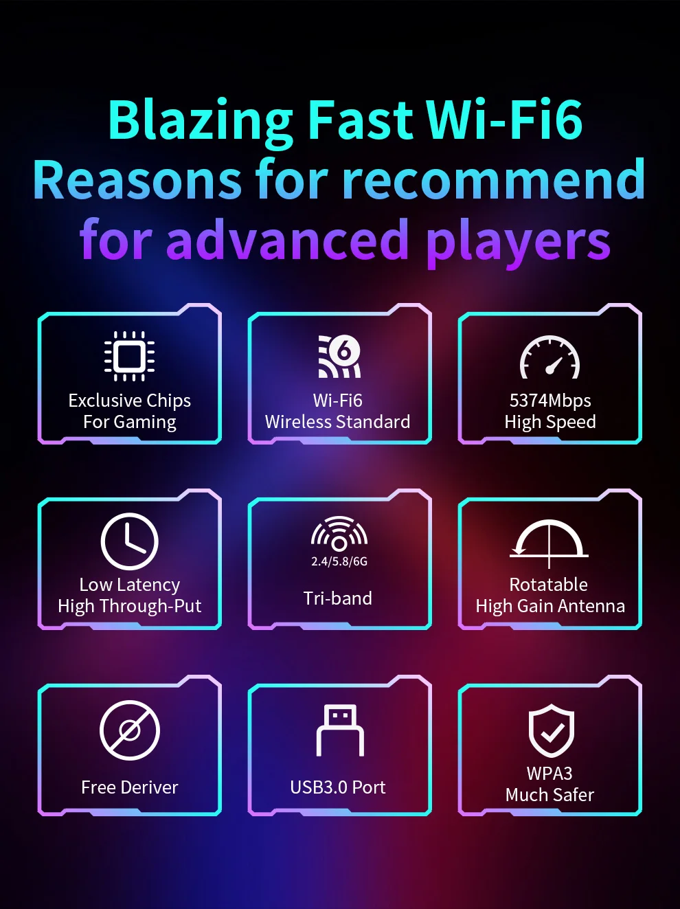 Tri-Band 6452Mbps, sin controlador, antenas duales, adaptador inalámbrico USB3.0