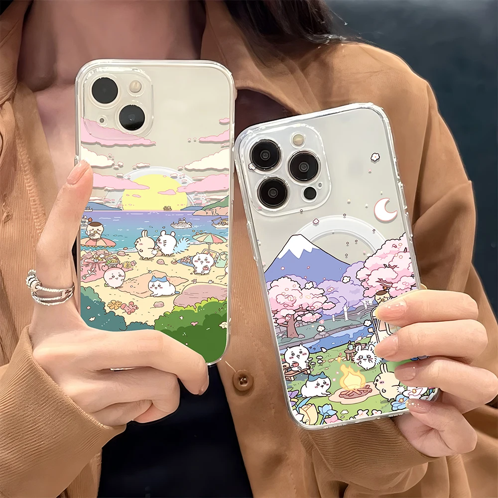 Comprar Comics Cute Chiikawas nueva funda de teléfono magnética Magsafe para Samsung Galaxy S24 S23 S22 S21 S20 FE Plus funda de TPU transparente Ultra suave