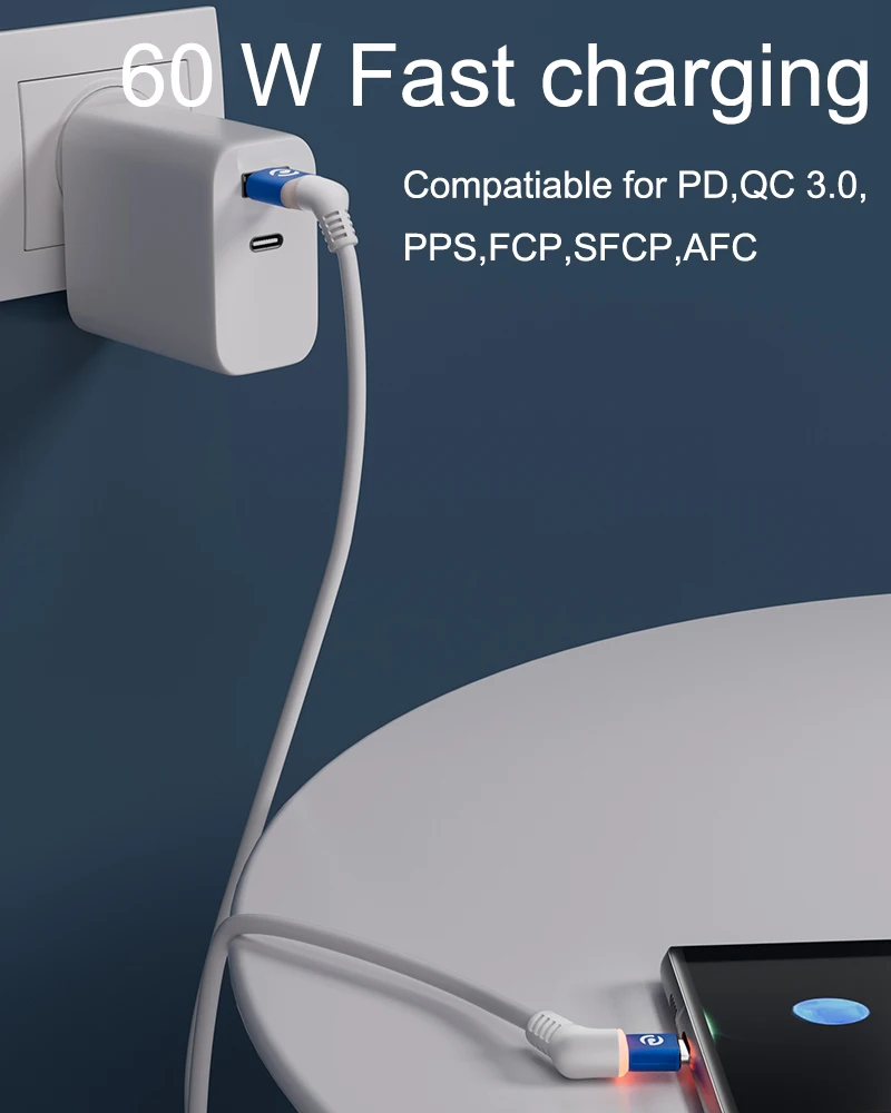 Comprar COMNEN 2PACK 3PACK 5PACK 60W tipo C a tipo C Cable de carga PD QC 3,0 cable de carga rápida Iphone Android Huawei Samsung Gamepad