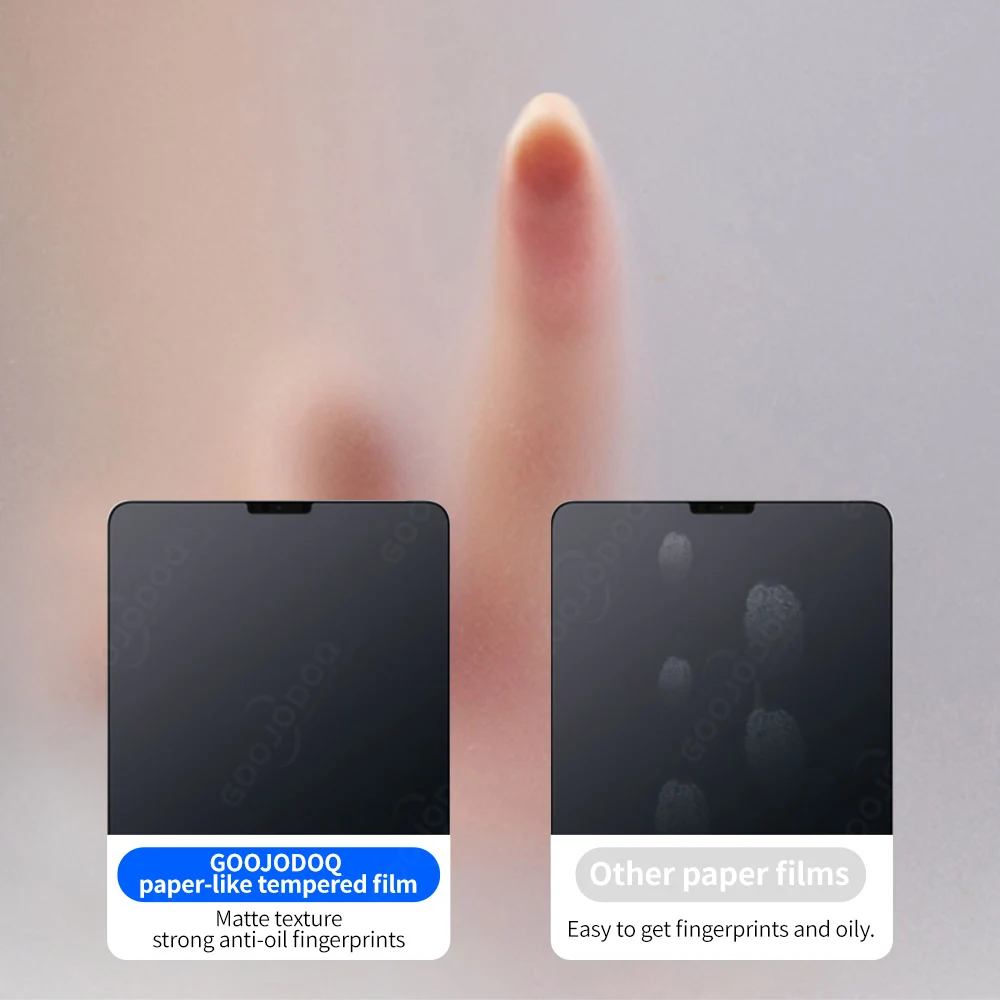 Con un nuevo acabado de papel, que ofrece protección contra arañazos, rasguños, deslumbramiento y puede aumentar la durabilidad durante las caídas. (Para una mejor protección contra caídas, se recomienda usarlo con una funda).