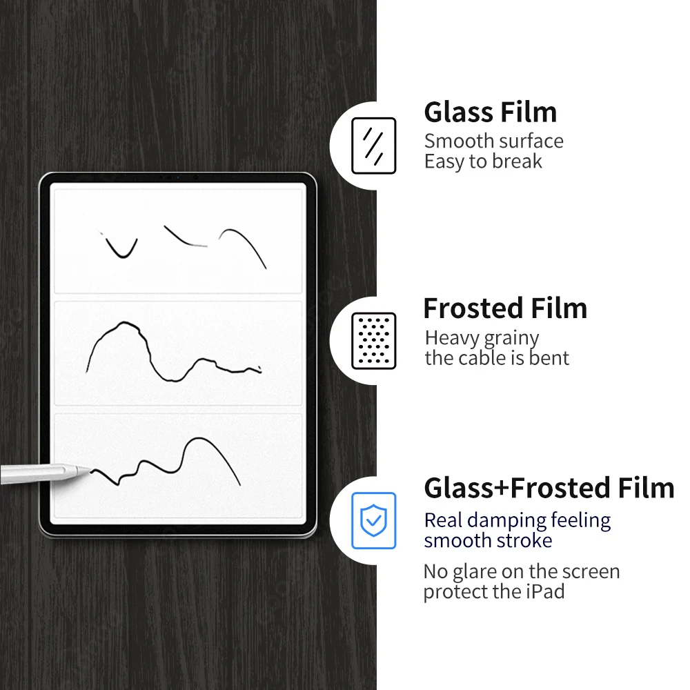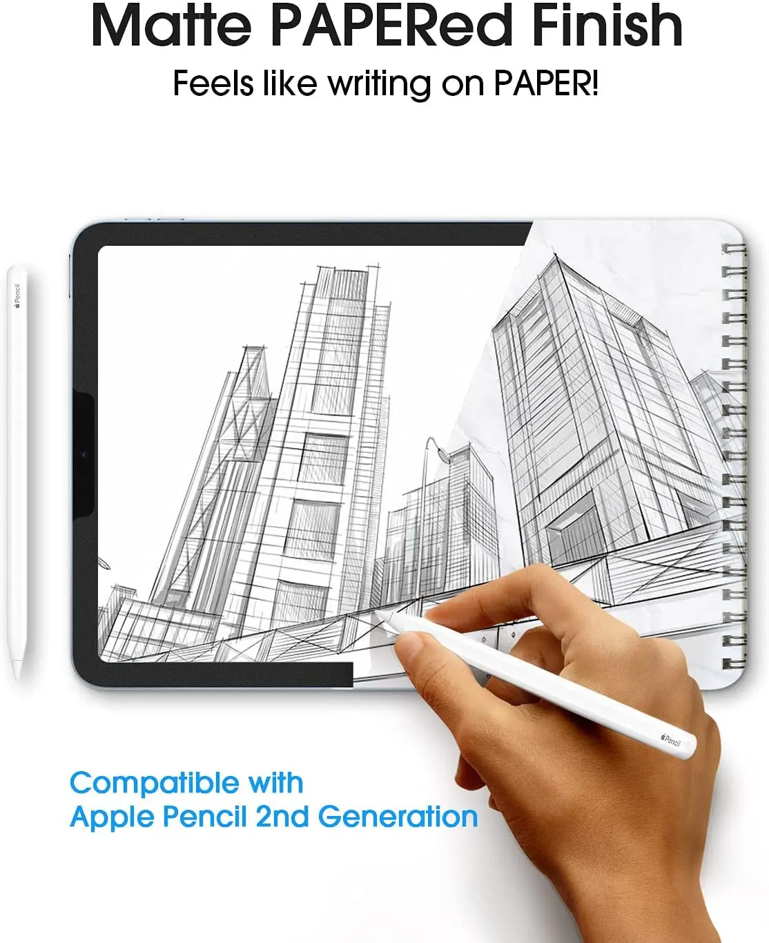 -Dibujo/escritura sin esfuerzo con película PET de textura de papel premium creada exclusivamente para iPad. Este protector de pantalla da un toque de papel, fricción y sensación. Minimiza el reflejo de la luz, mejora la visibilidad.
