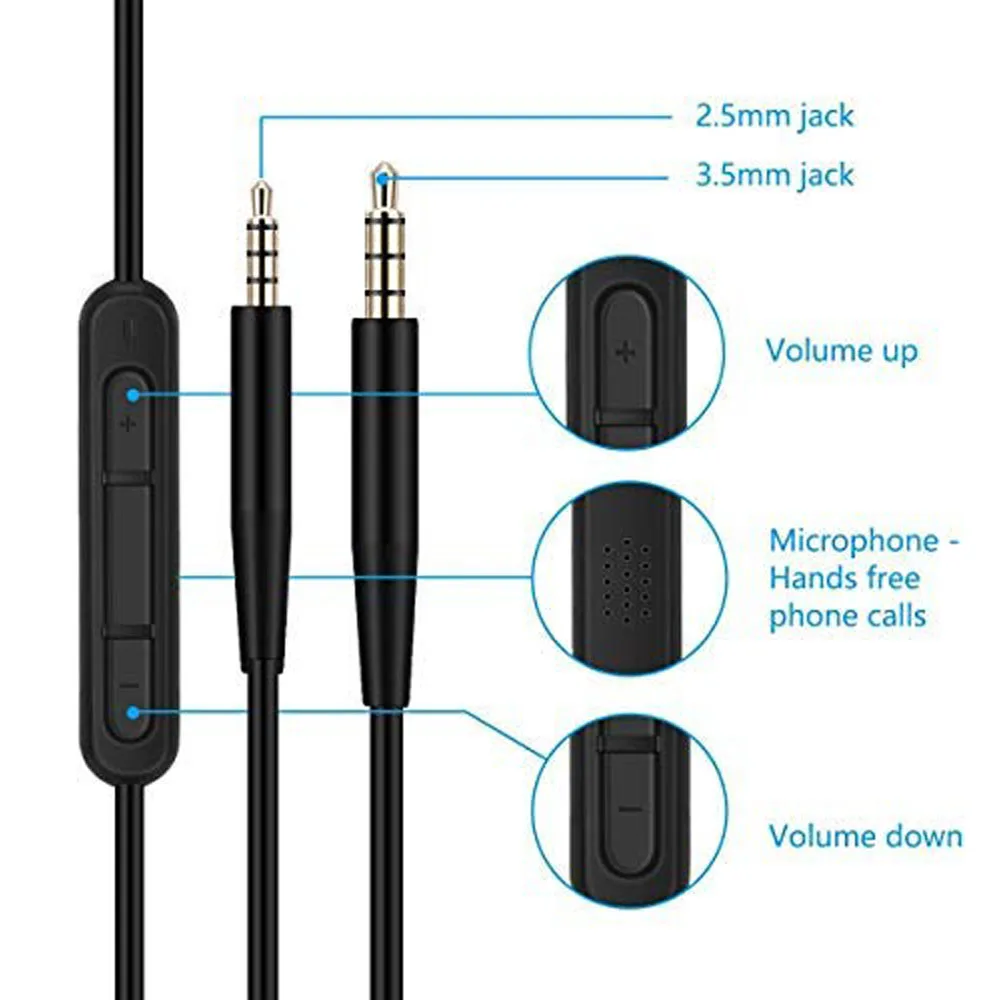 Comprar Para comodidad silenciosa 25 QC25 QC35 QC45 SoundTrue OE2 OE2i SoundLink auriculares 2,5mm a 3,5mm Jack Cable de Audio para auriculares con micrófono