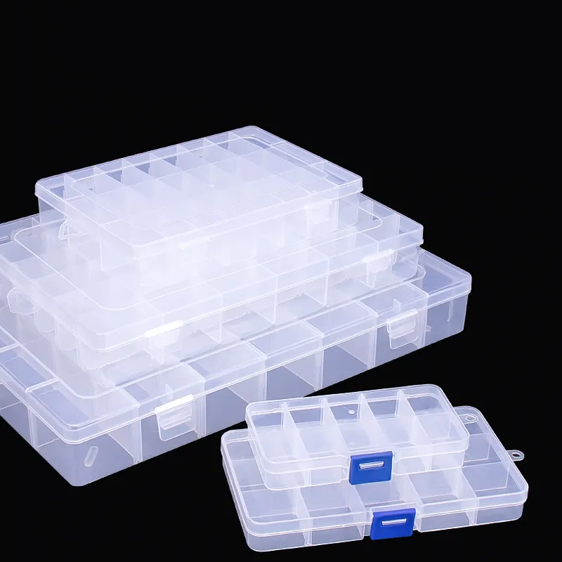Comprar Compartimentos ajustables de plástico transparente, organizador de cuentas de joyería, cubierta de caja de almacenamiento, piezas de caja de tornillos, 10/15/24 rejillas