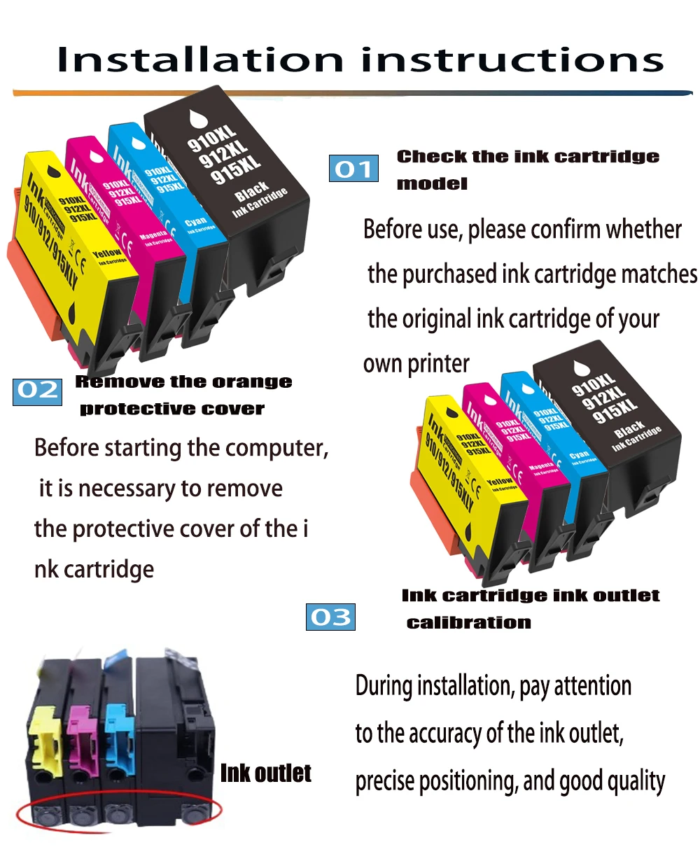 Compatible con cartucho de tinta HP 910 910XL OfficeJet 8010 8012 8013 8014 8015 8017 8018 8020 8022 8023 8024 8025 8026 8028 8035