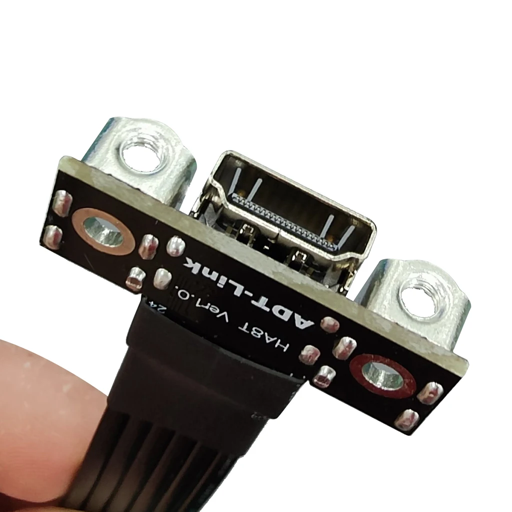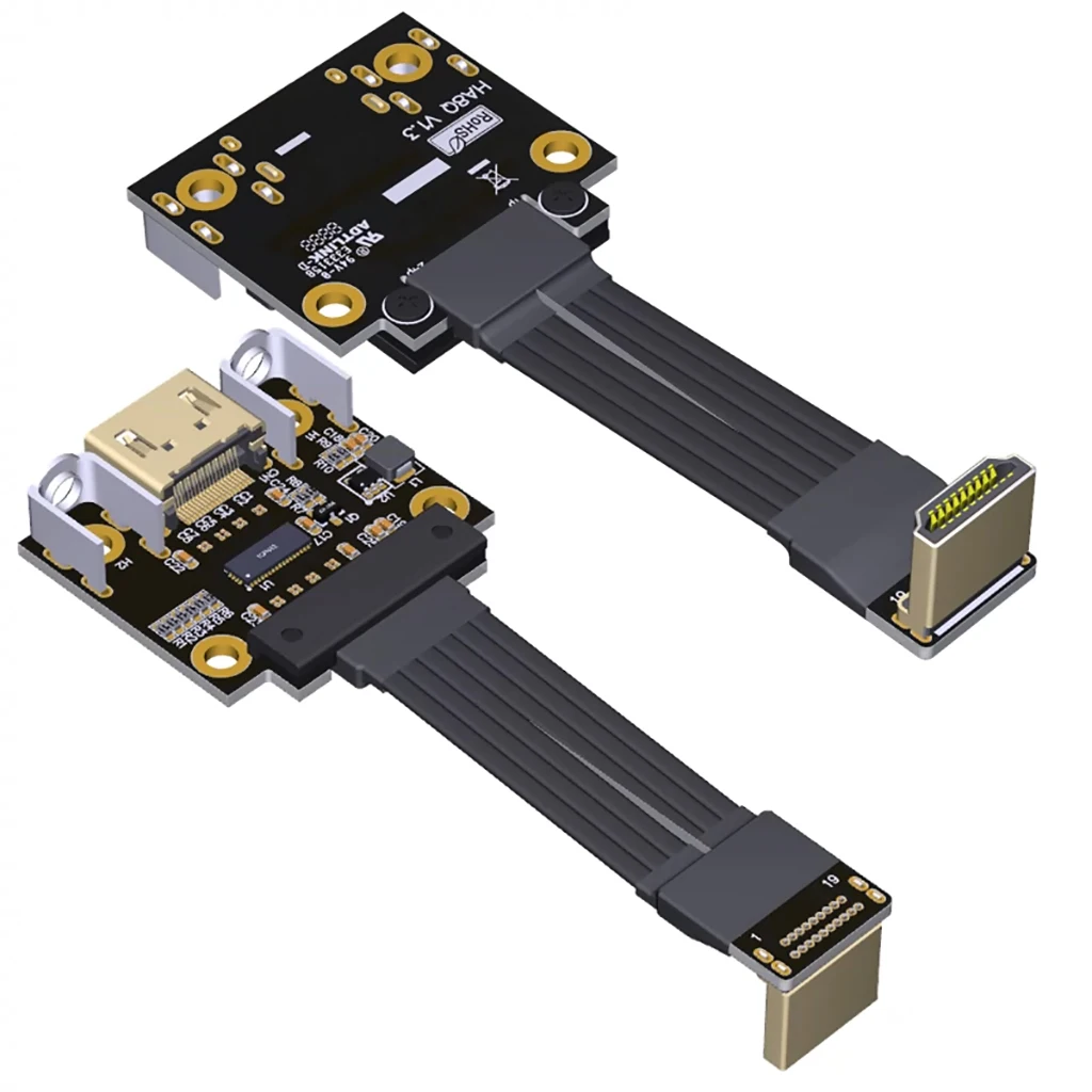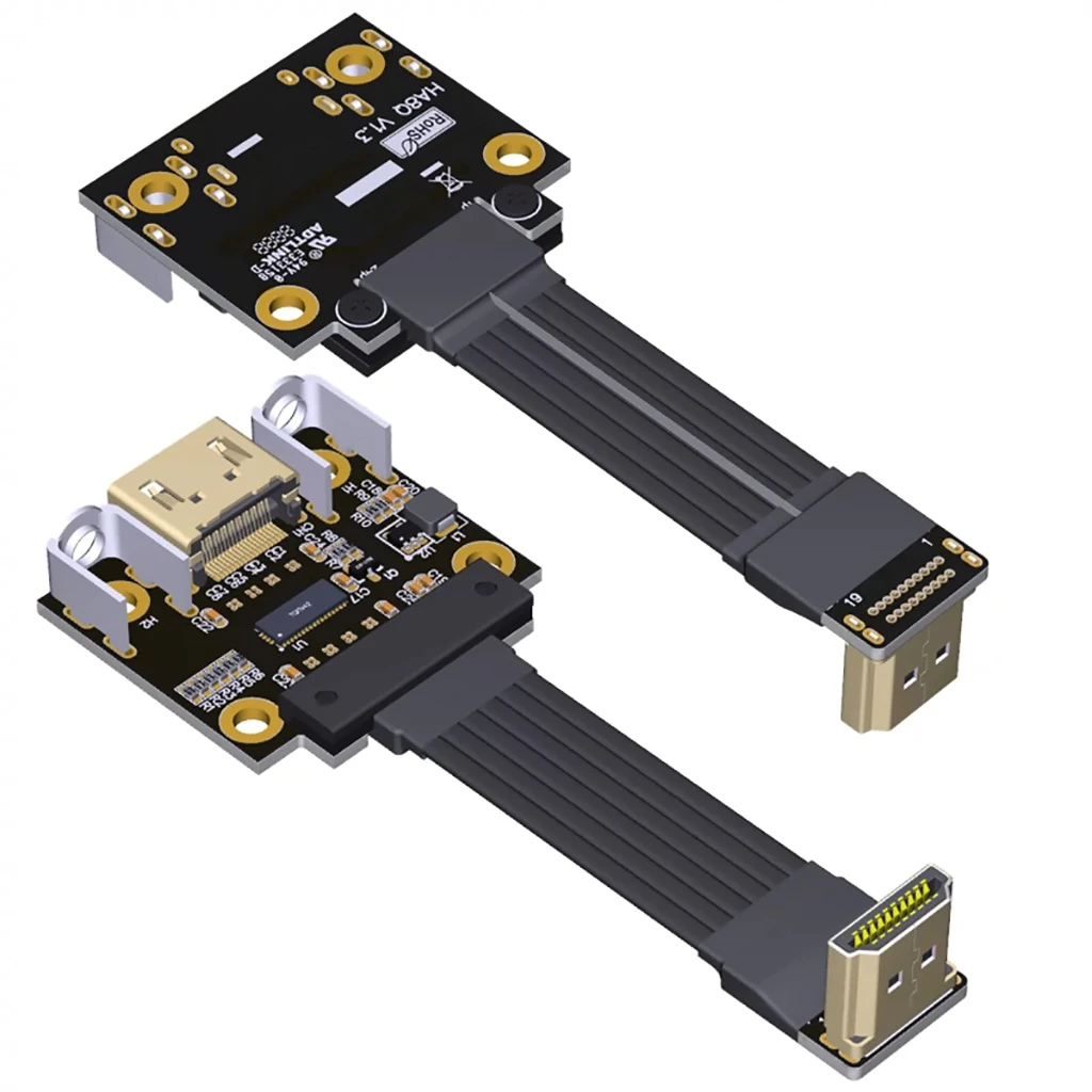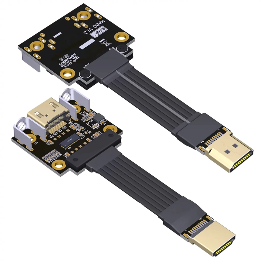 HDMI-compatibleEnchufe macho subcurvado a hembra binaural rectoNegro con escudo metálico.HA7-HA8Q-compatible