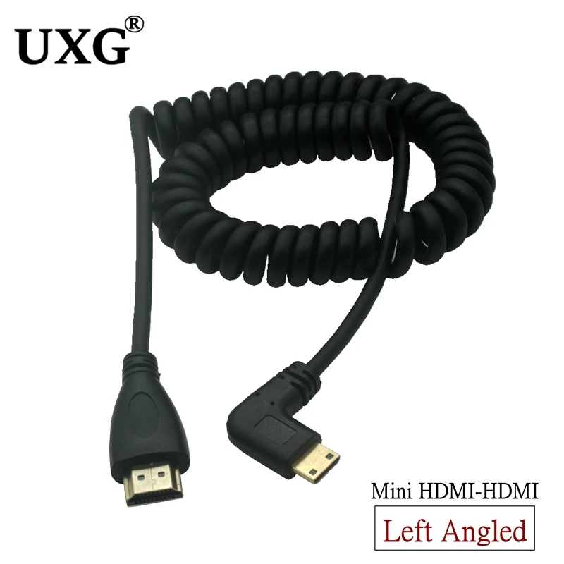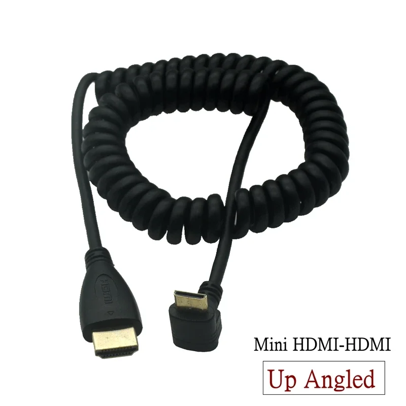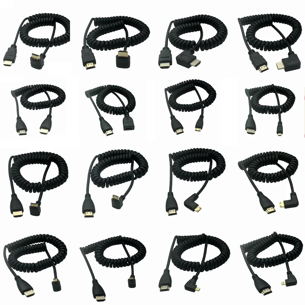 Comprar Compatible con HDMI HDTV a ángulo derecho e izquierdo Mini HDTV, HDTV y Micro HDTV macho a macho Cable Flexible de rizo de resorte elástico V1.4