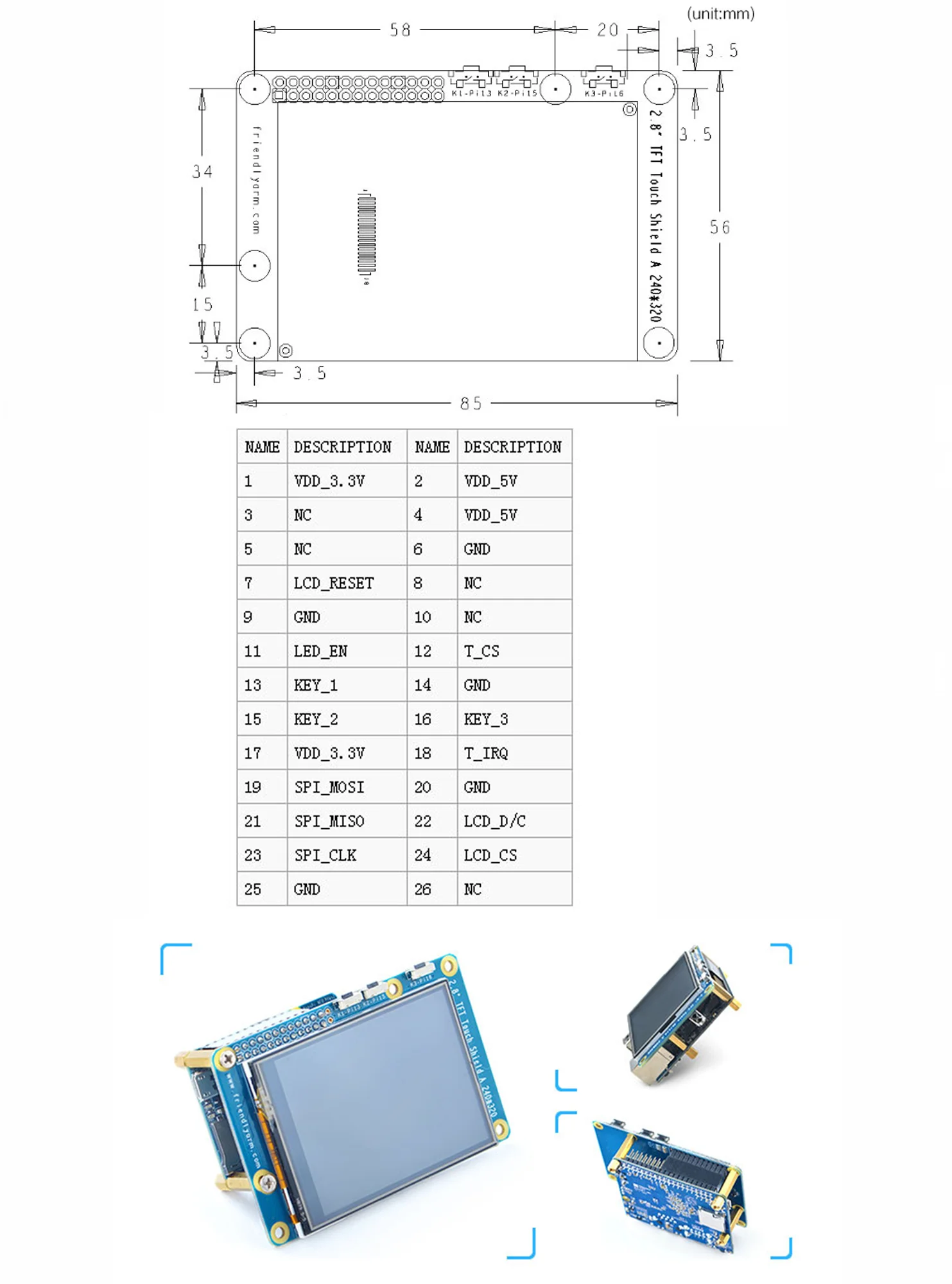 Compatible con interfaz TFT SPI de pantalla táctil resistiva de 2,8 pulgadas NanoPi 2