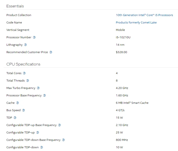 Comprar Componente electrónico CPU procesador I5-10210U SRGKY