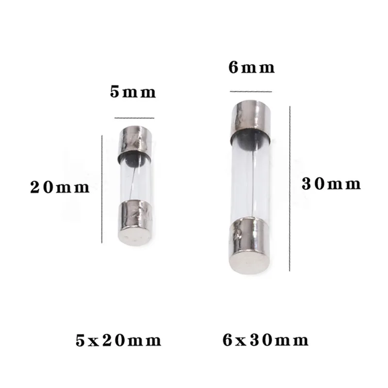 Comprar Componentes de fusible de vidrio, Kit de bricolaje, 5x20mm, 6x30mm, 10 tipos x 10 piezas = 100 piezas, 5x20MM, 0,5a, 1A, 2A, 3A, 4A, 5A, 6A, 8A, 10A, 20A, 250V, 6x20mm 30mm