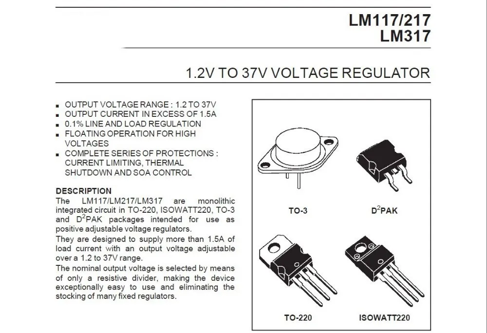LM317T LM317 Regulador de voltaje IC 1.2V a 37V 1.5A. Si desea buena calidad, elíjanos