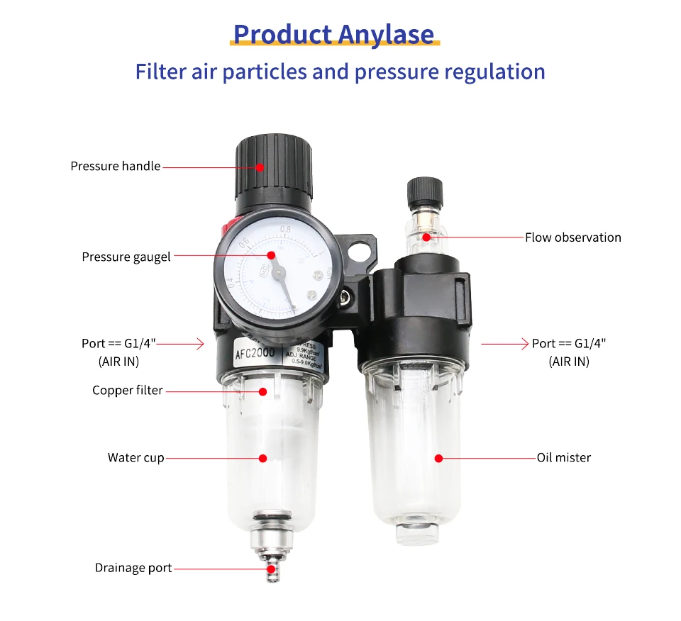 Regulador de manómetro Trampa Filtro Aerógrafo AFR2000 + AL2000 G1/4 "Compresor AFC2000