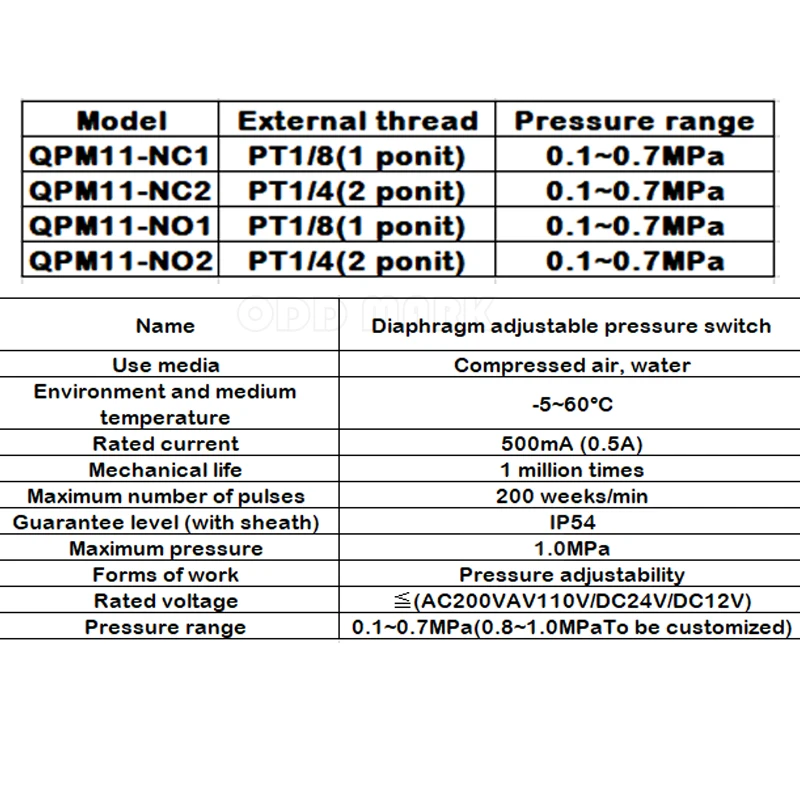 Compresor de aire con interruptor de presión ajustable neumático QPM11-NO/NC