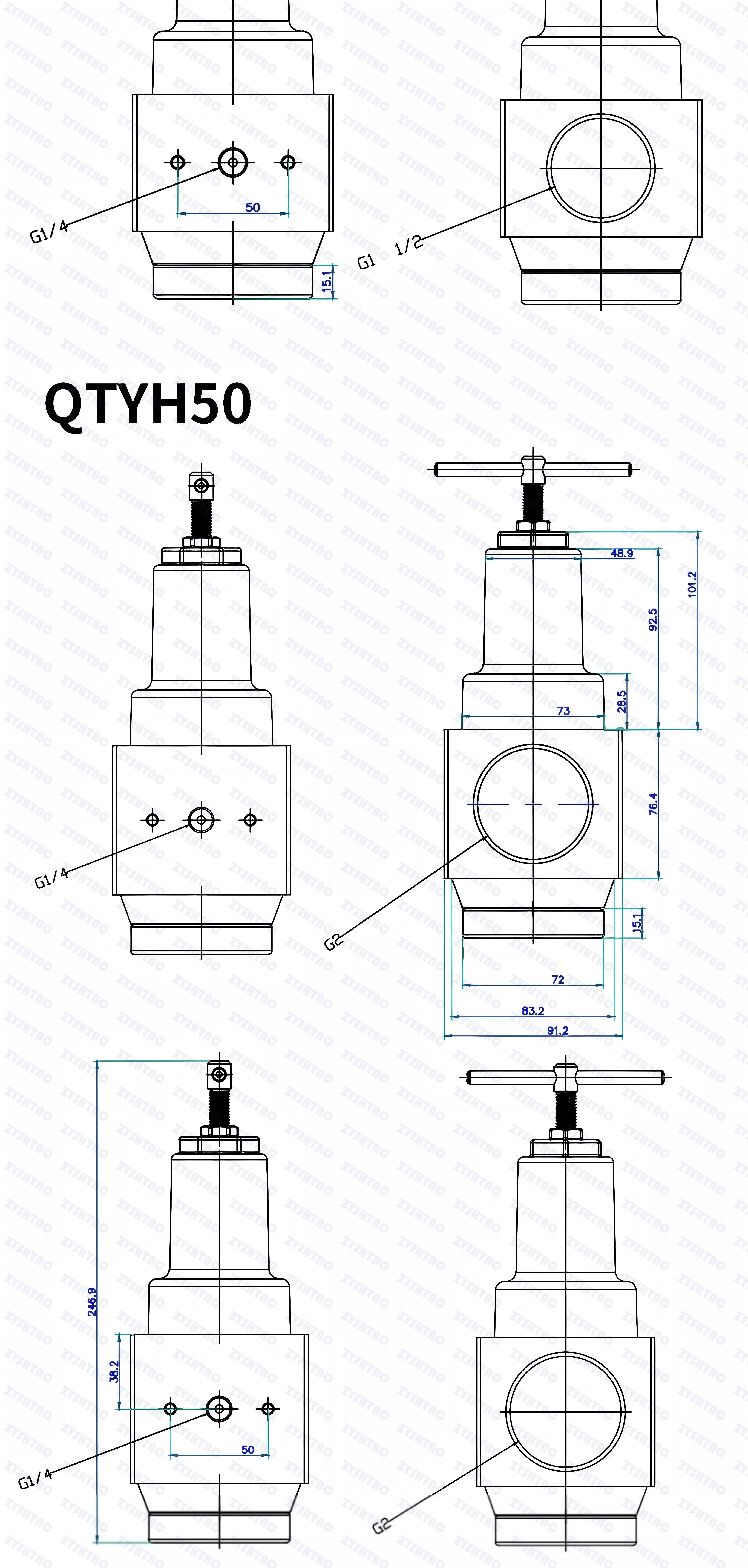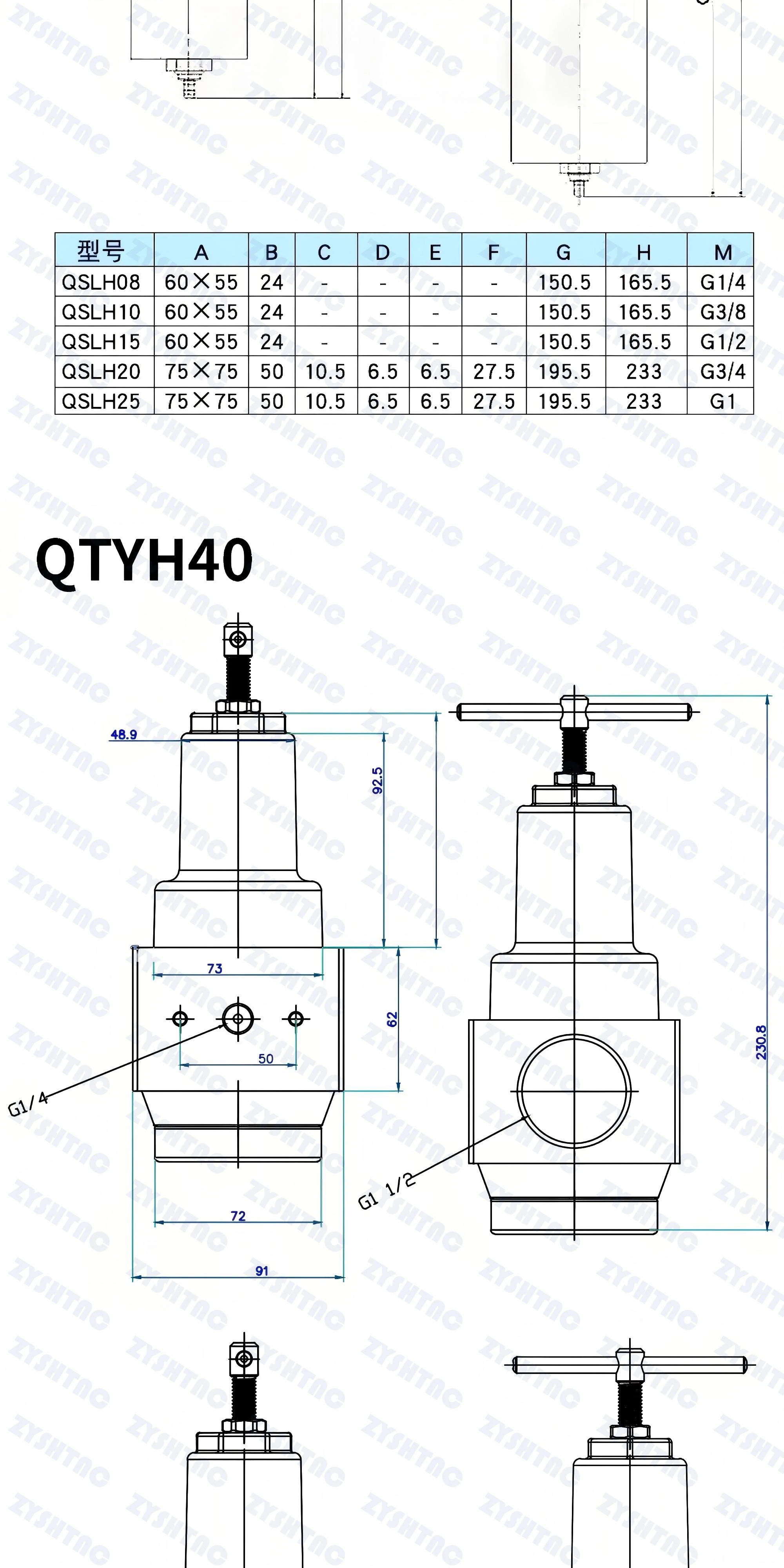 ●Se recomienda utilizar únicamente "QTYH" para ajustar la presión a 1MPA.Para presiones de hasta 1 MPA, se recomienda utilizar válvulas reductoras de presión normales o válvulas reductoras de presión de precisión para la regulación de presión secundaria.