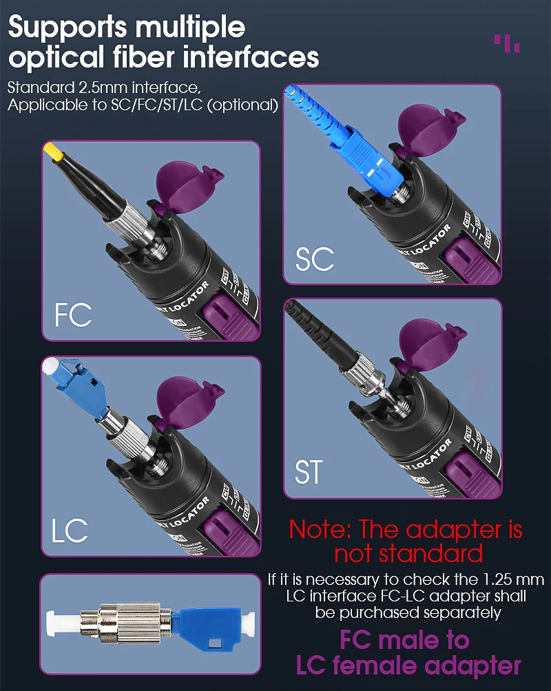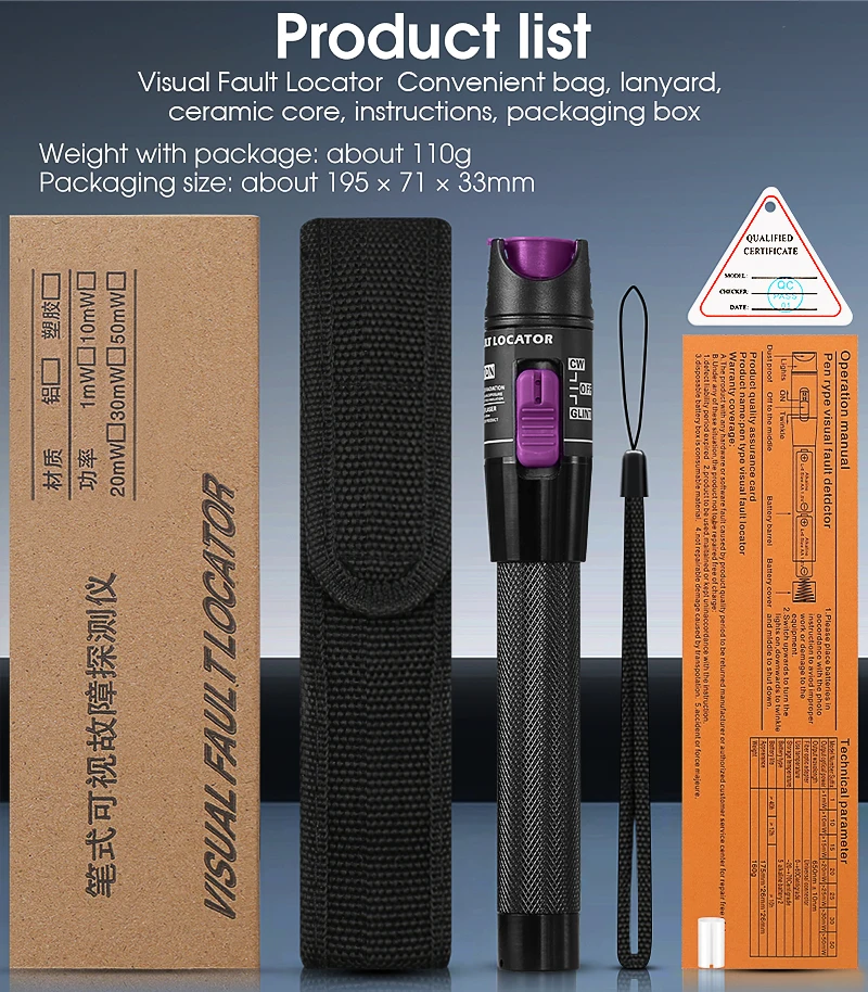 COMPTYCO 30/1/10/20/50mW localizador Visual de fallos pluma probadora de Cable de fibra óptica SC/FC/ST interfaz de 2,5mm herramienta de prueba de fibra óptica FTTH