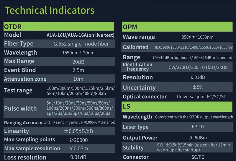 Comprar COMPTYCO AUA-16U/16A Mini OTDR 80KM reflectómetro de dominio de tiempo óptico probador de Cable de fibra óptica con mapa de eventos/OPM/VFL/luz LED