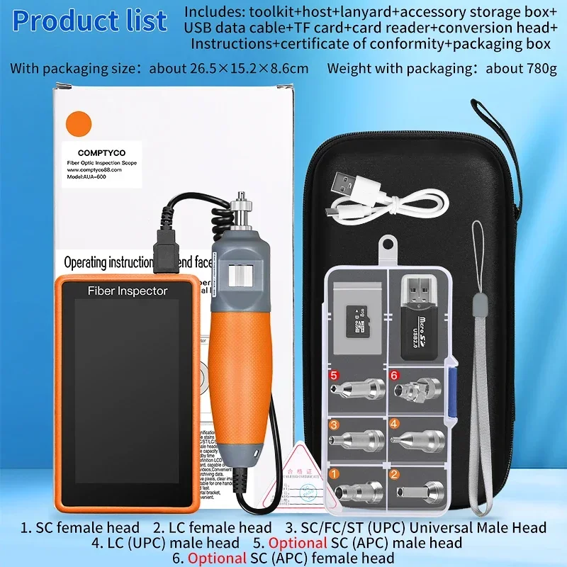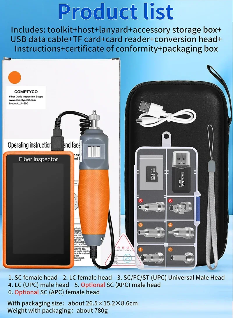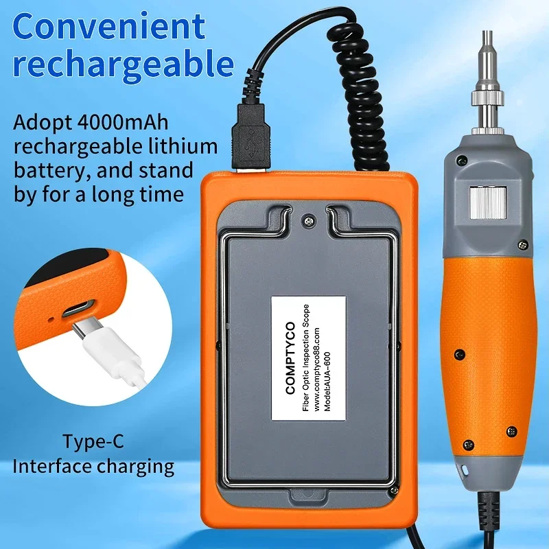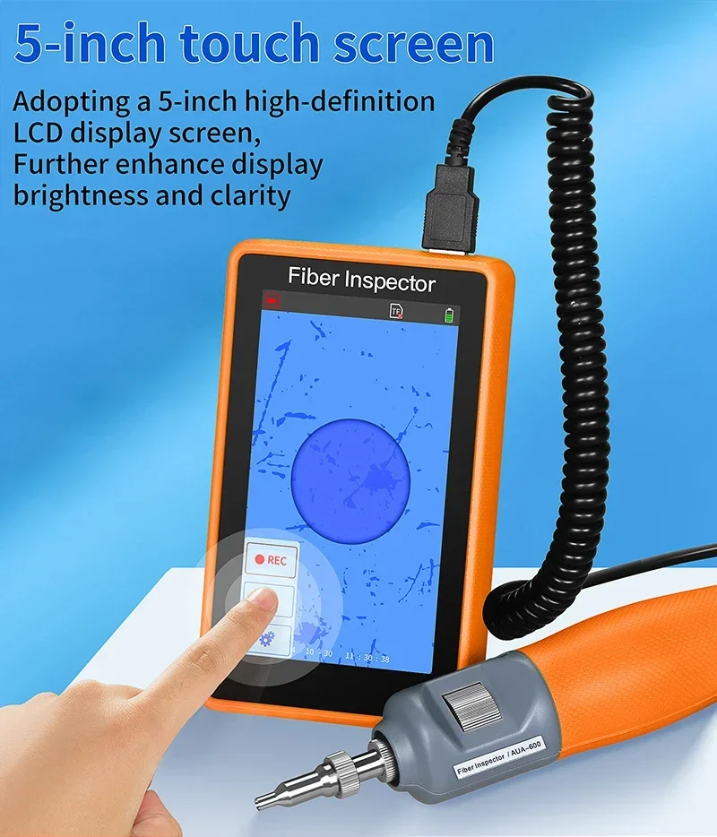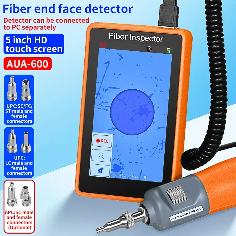 COMPTYCO AUA-600 limpiador de fibra óptica 400X microscopio de fibra óptica pantalla táctil HD de 5 pulgadas sonda de inspección Detector facial de extremo de fibra