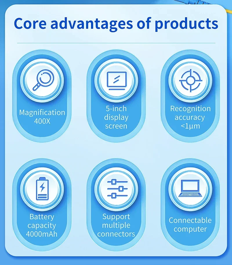 Comprar COMPTYCO AUA-600 limpiador de fibra óptica 400X microscopio de fibra óptica pantalla táctil HD de 5 pulgadas sonda de inspección Detector facial de extremo de fibra