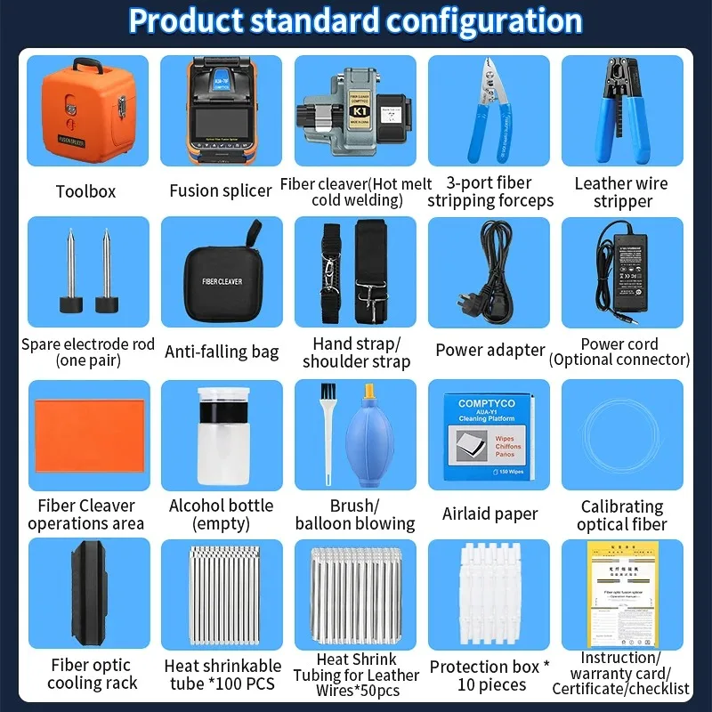 Comprar COMPTYCO AUA-70F empalmador de fusión de fibra óptica seis motores multilingüe SM/MM máquina de soldadura de núcleo de fibra función VFL OPM incorporada