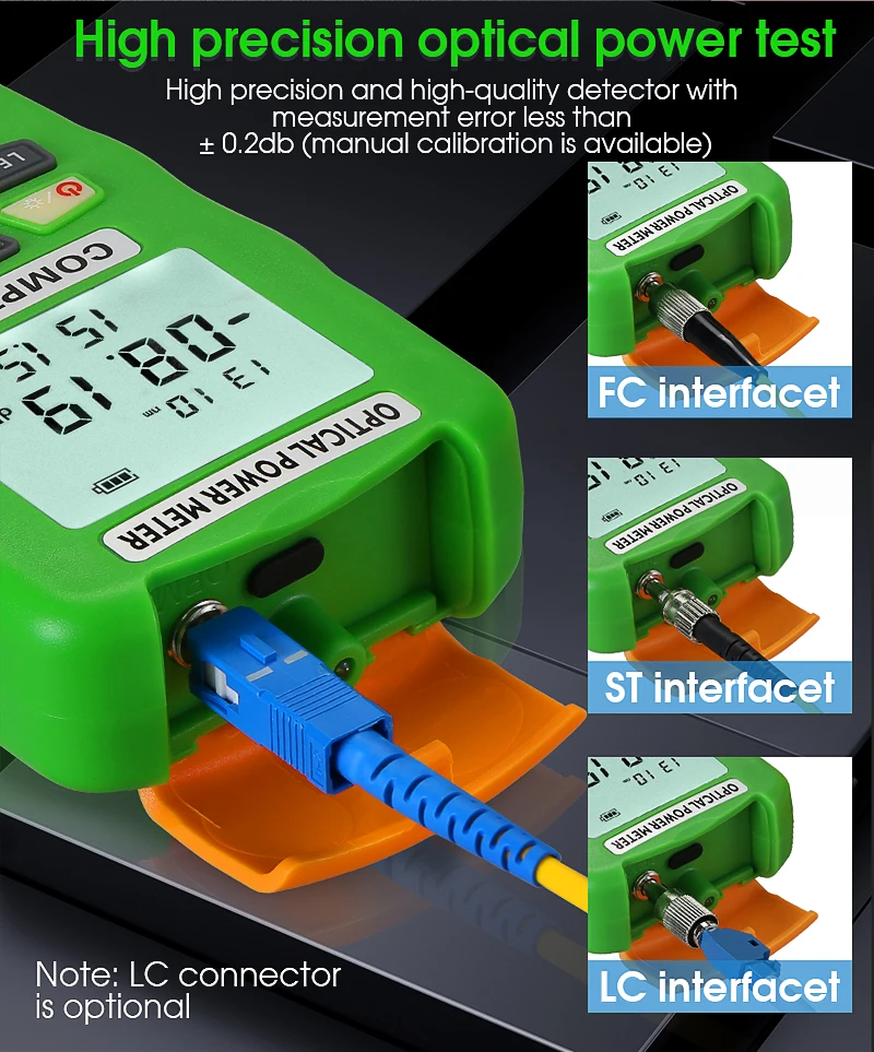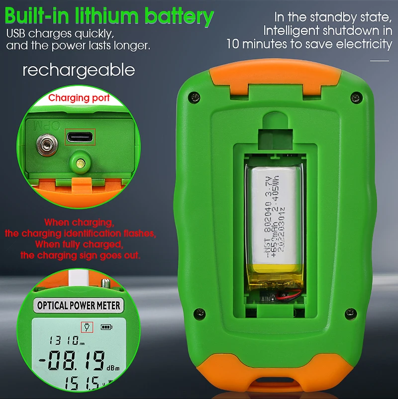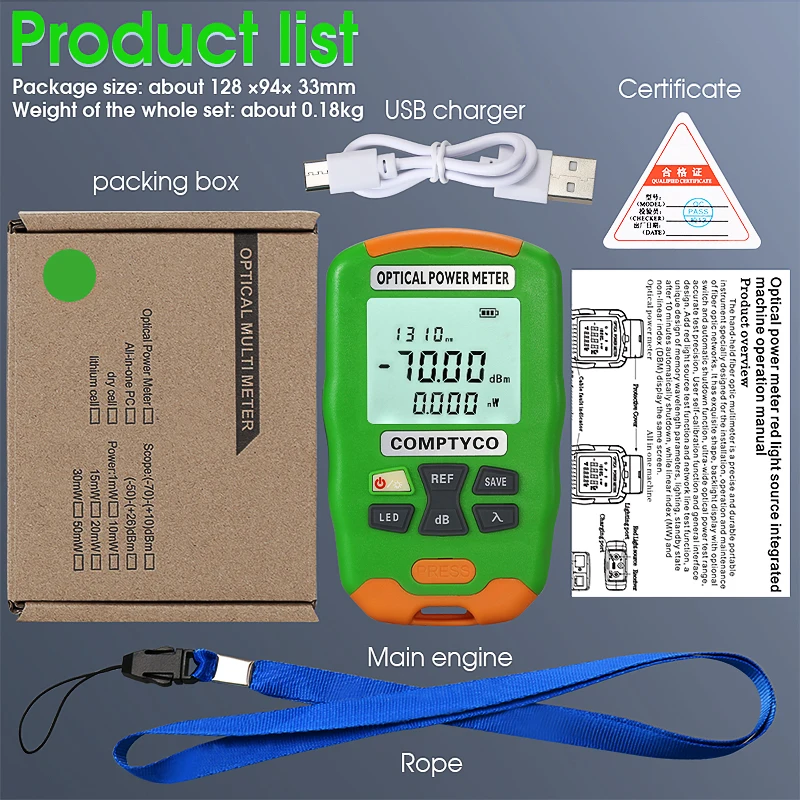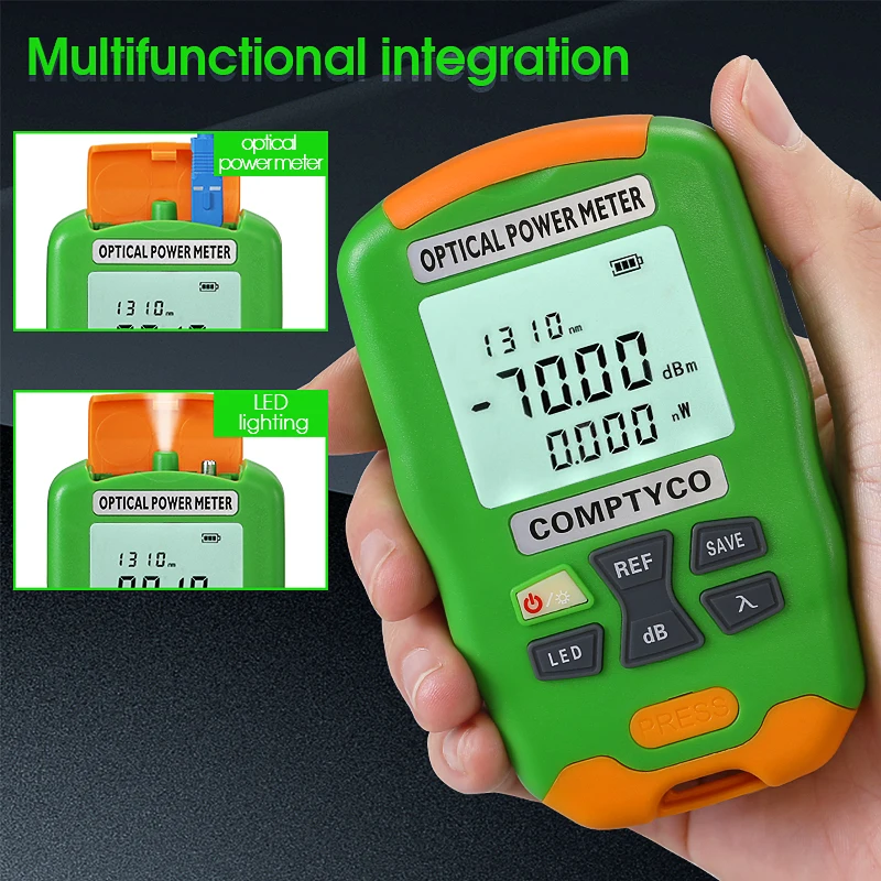 Comprar COMPTYCO AUA-DC7/DC5/D7/D5 Mini medidor de potencia óptica probador de fibra óptica OPM con iluminación LED. Batería recargable/seca (opcional)