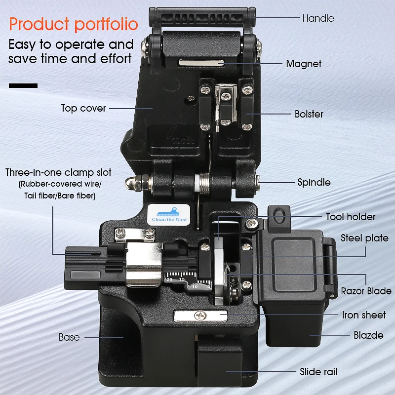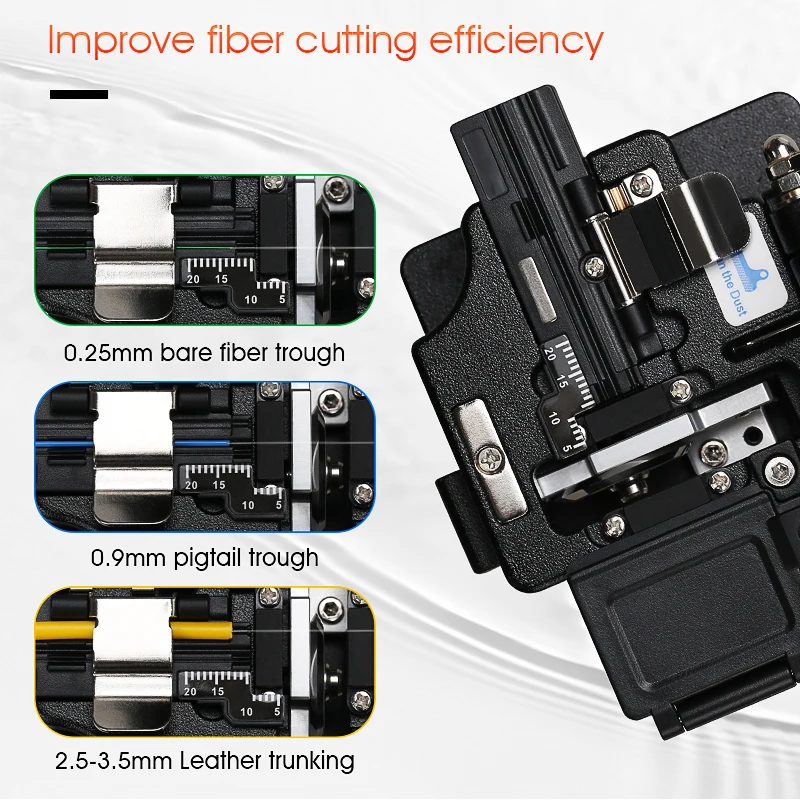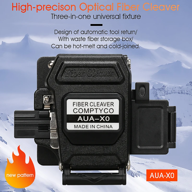 COMPTYCO AUA-X0 Cuchilla de fibra de alta precisión con caja de fibra residual, herramientas de corte FTTH Cortador de cable de fibra óptica 16 hoja de superficie