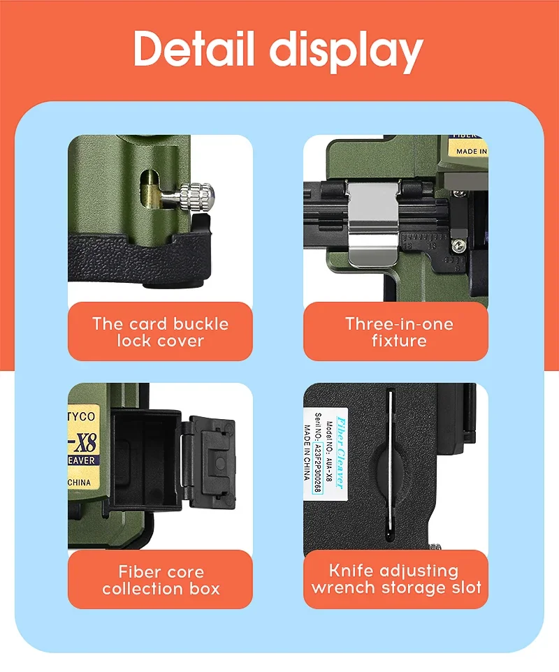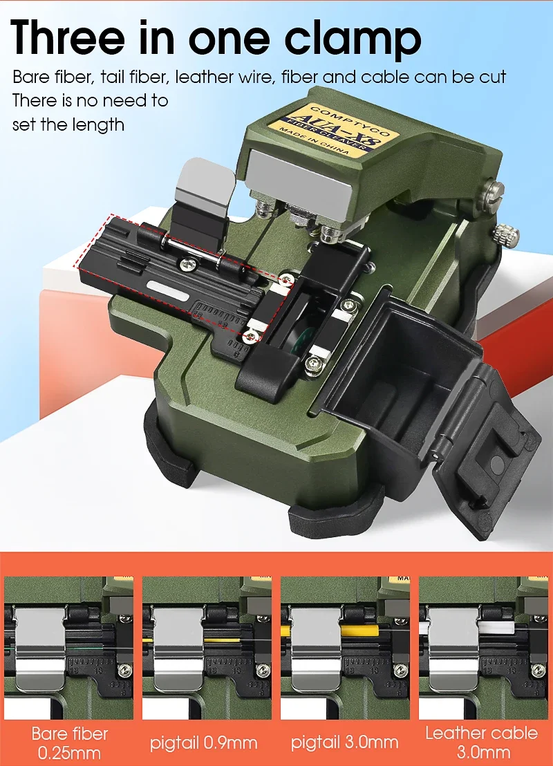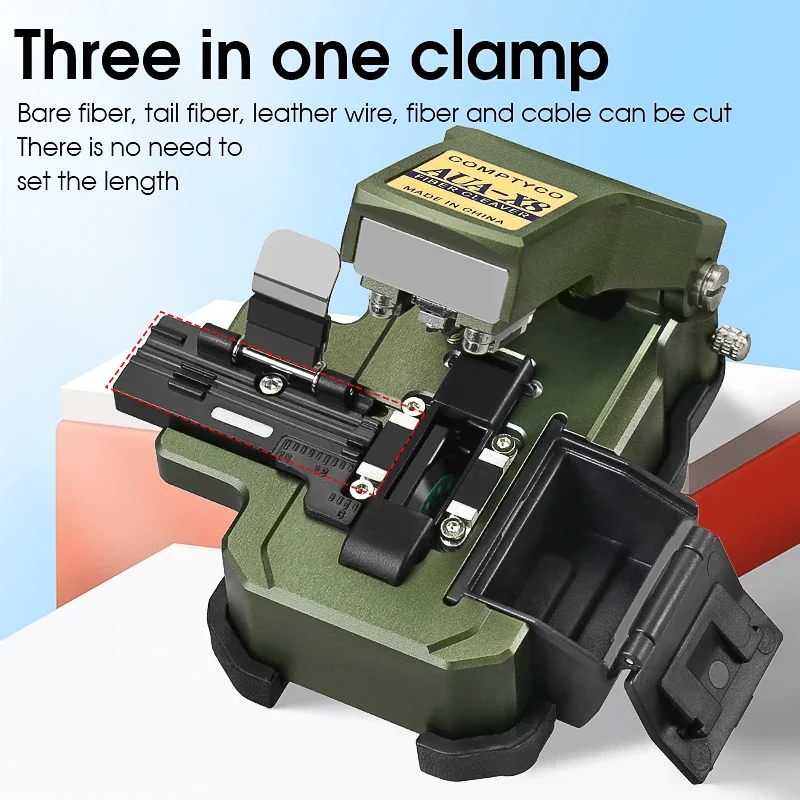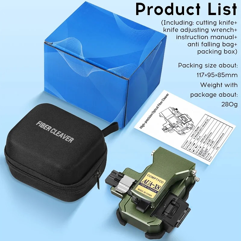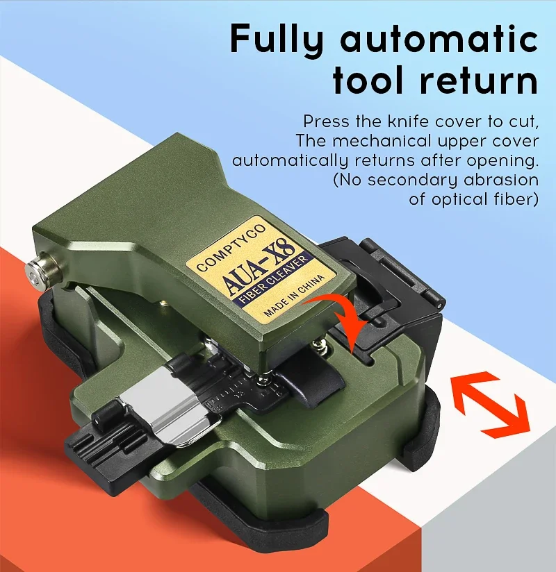 COMPTYCO AUA-X8 Herramientas de cuchillo de fibra óptica FTTT de corte de cable de cuchilla de fibra automática de alta precisión con caja de fibra de desecho