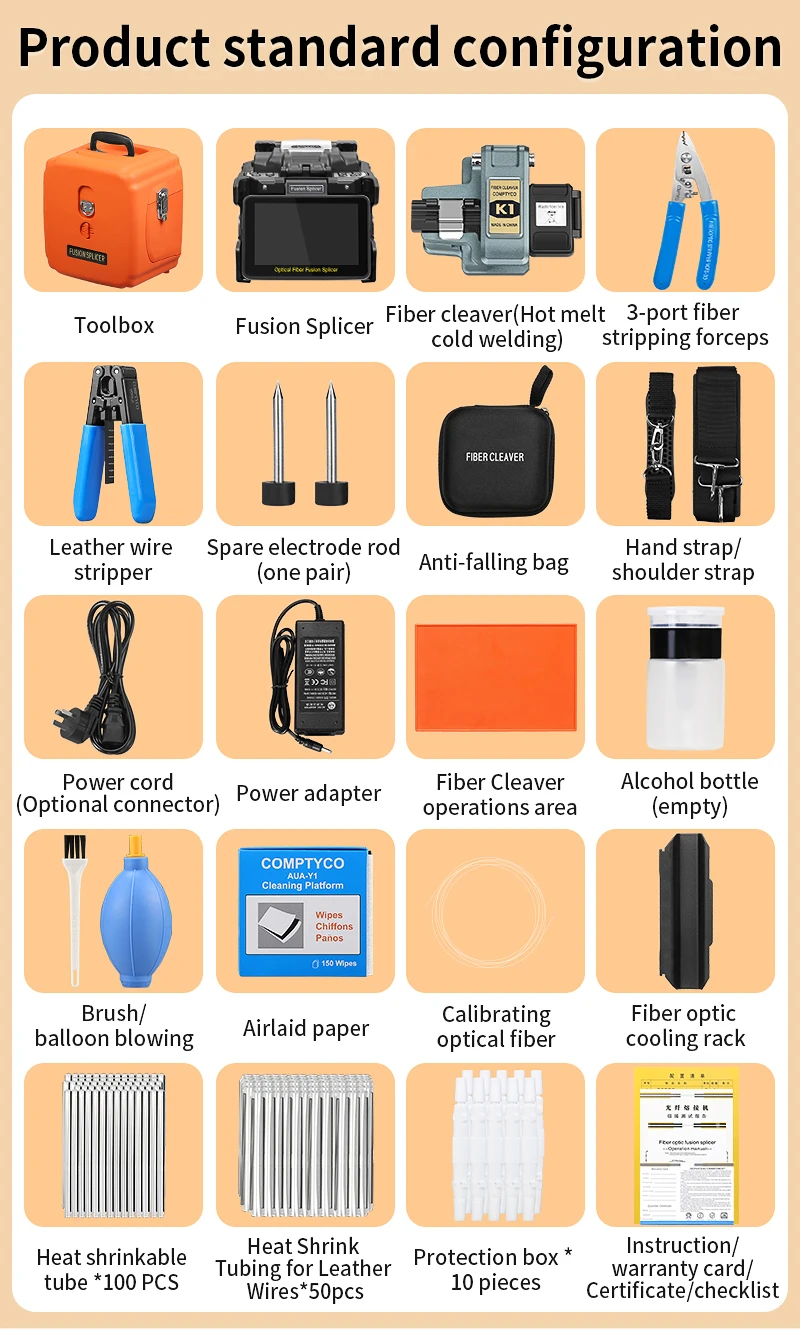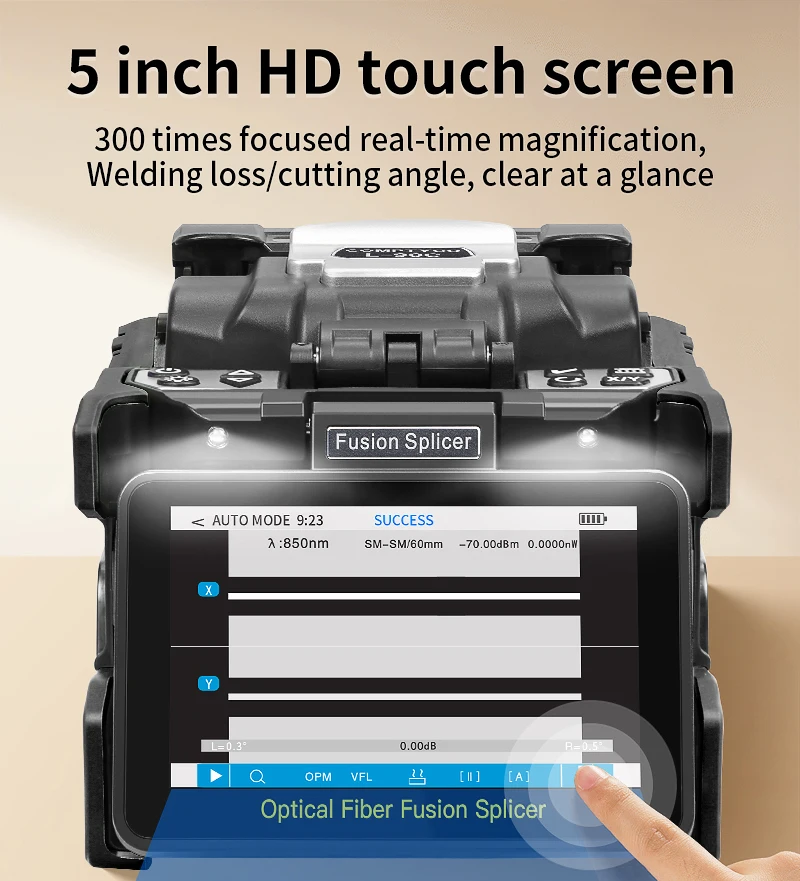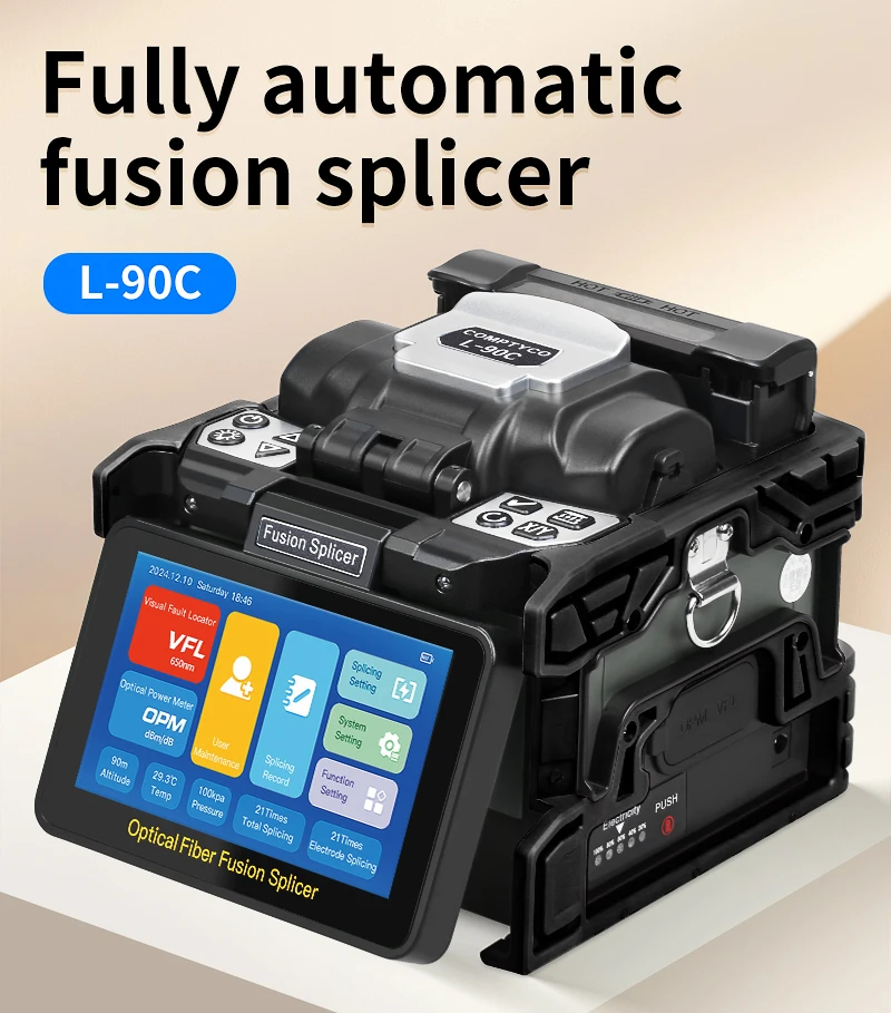 COMPTYCO FS-60E/L-90C empalmador de fusión de fibra óptica pantalla táctil multilingüe SM MM máquina de soldadura de núcleo de fibra incorporada OPM VFL