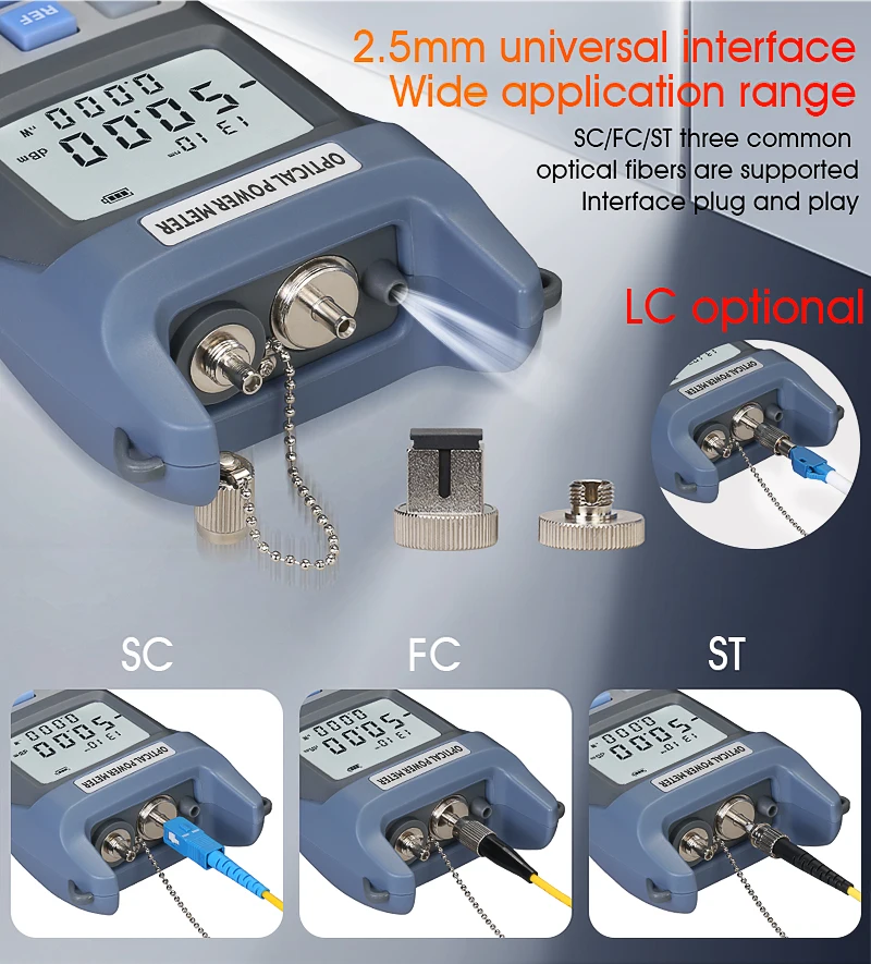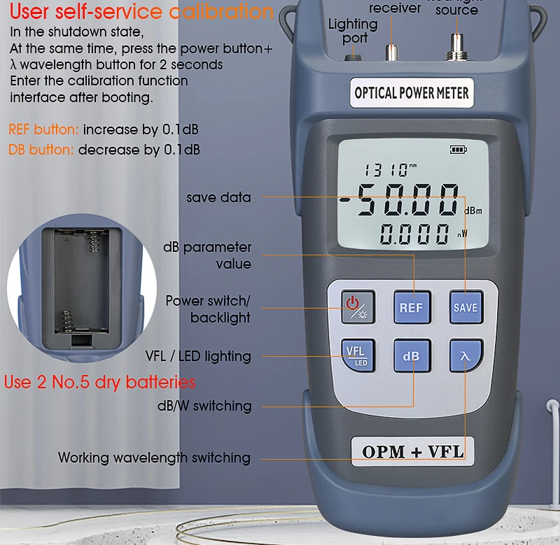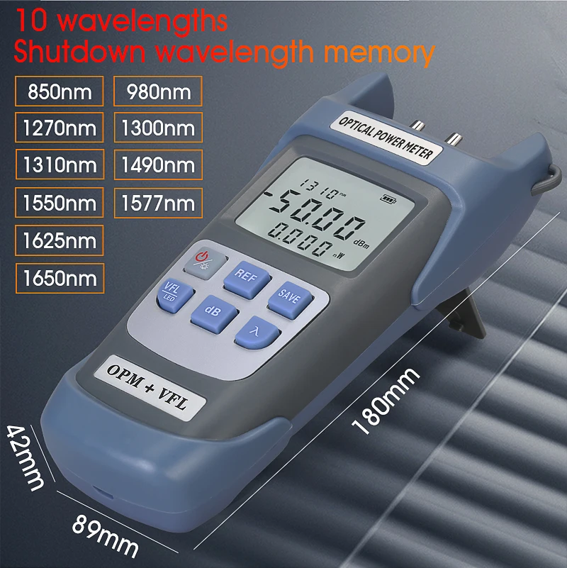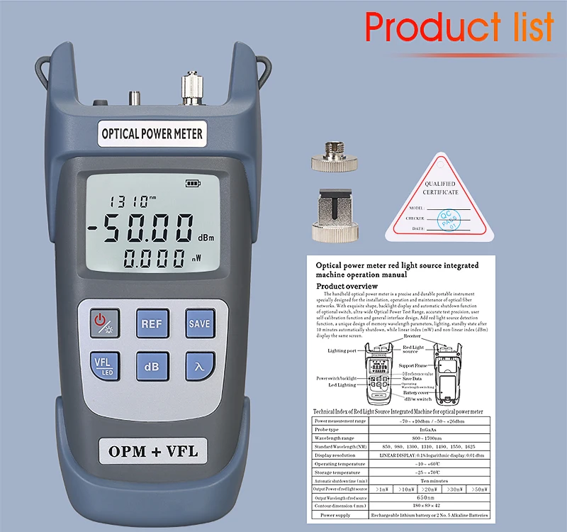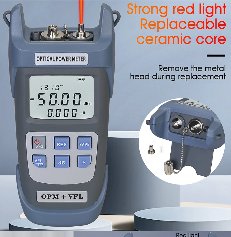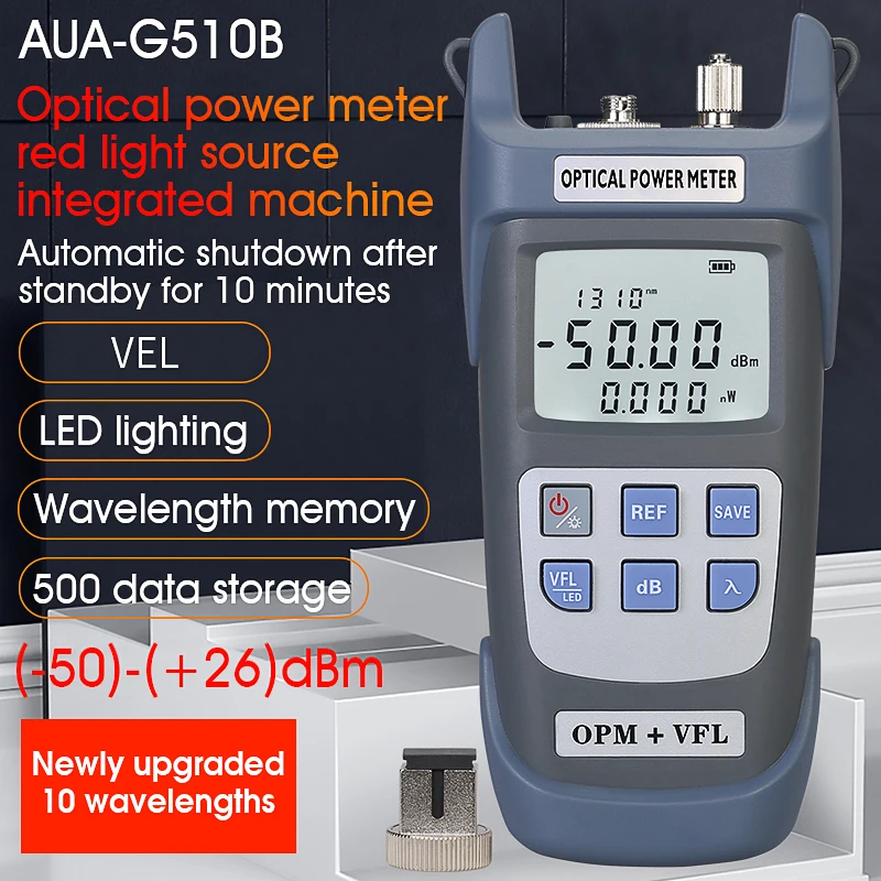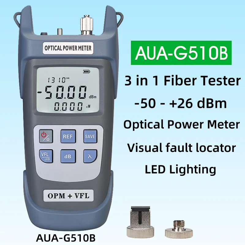 COMPTYCO gris AUA-G510B probador de fibra óptica 3 en 1 medidor de potencia óptica (-50 ~ + 26dBm OPM) y localizador Visual de fallos (VFL) y iluminación LED