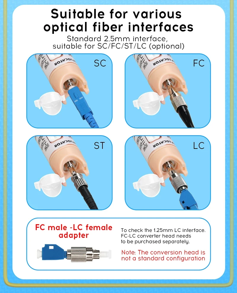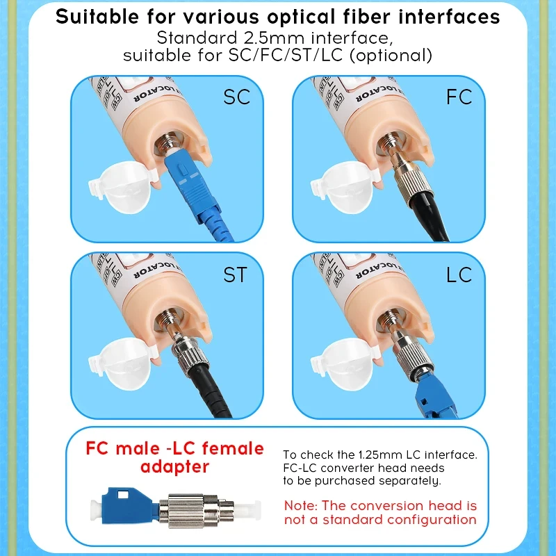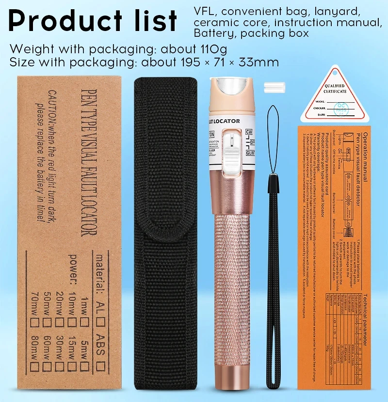 COMPTYCO-Localizador Visual de Fallos, herramienta de prueba de Cable de fibra óptica tipo bolígrafo, interfaz FTTH de 2,5mm, 10/20/30/50/60/80MW SC/FC/ST