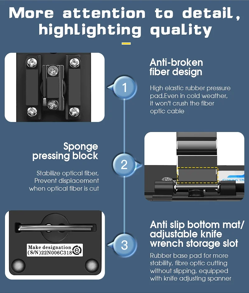 Comprar COMPTYCO S-08 Cuchilla de fibra Cable FTTH Cuchillo de corte de fibra óptica Abrazadera tres en uno Ranura 16 Hoja de superficie