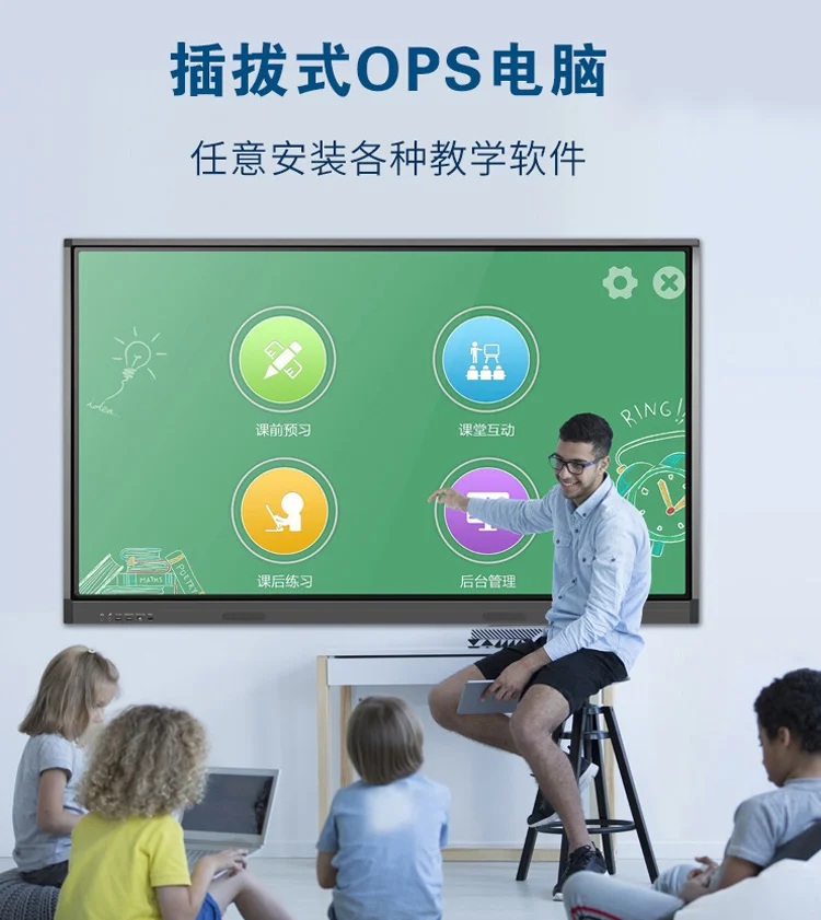 Computadora i3i5i7 OPS llamada espera enseñanza táctil todo en uno OPS host pizarra electrónica software de educación preescolar