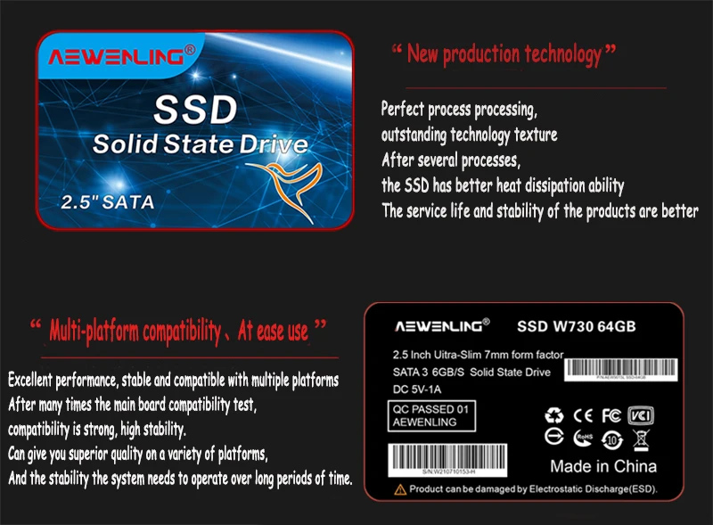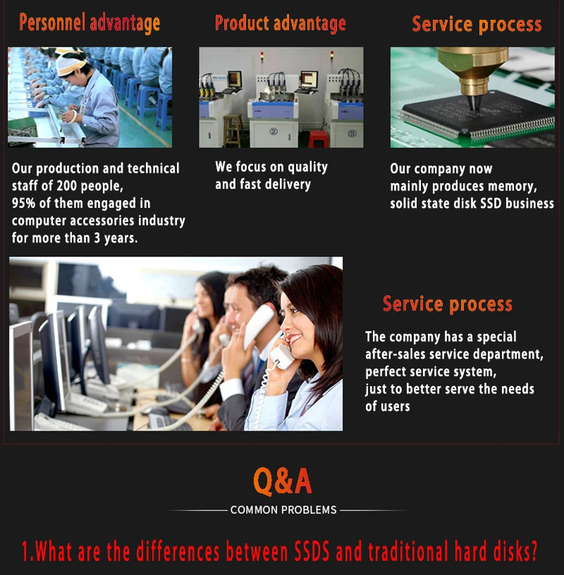 Aprovecha el potencial de la computadora para mejorar su velocidad de arranque y carrera.Para mejorar eficazmente la eficiencia del trabajo, es fácil lidiar con la pesada carga de trabajo.Capacidad de memoria: 60G/64G/120G/128G/240G/256G/480G/512G/960G/1TB