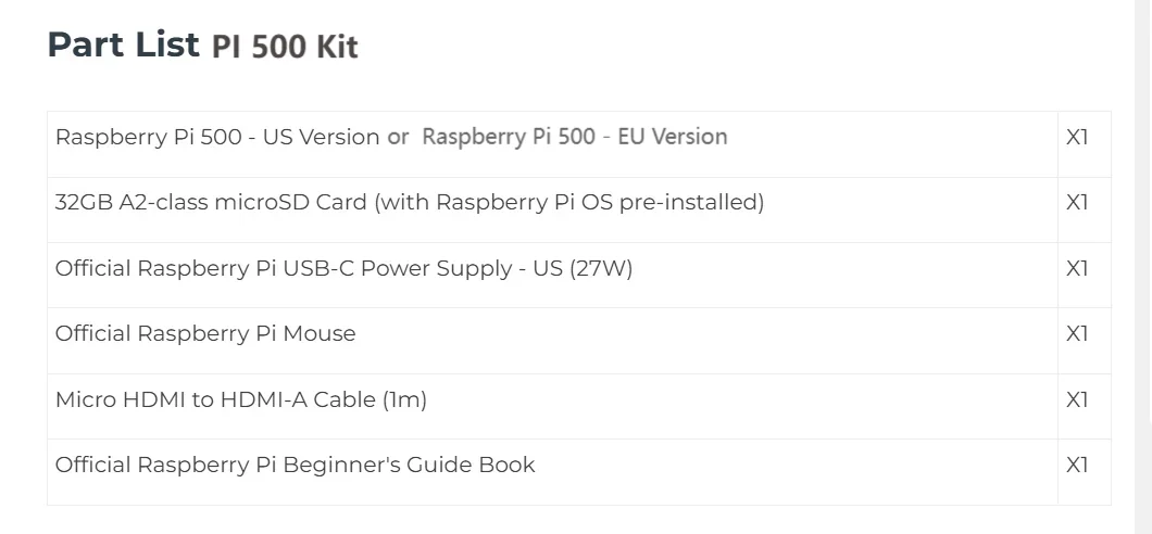 Raspberry Pi 500 - Versión EE. UU. X1 (o Versión UE X1)