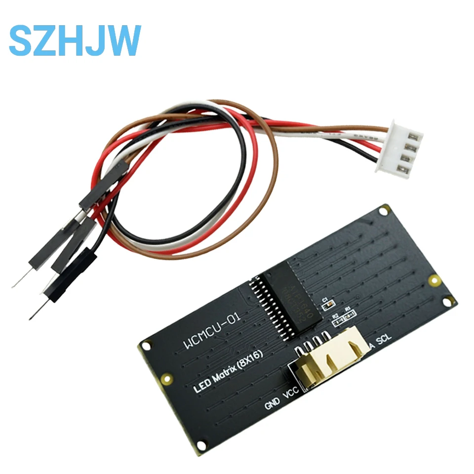 El tablero de luz LED 8x16 viene con 128 LED y está equipado con un chip AIP1640.Podemos realizar la comunicación I2C entre el microordenador de un solo chip y este módulo.Al controlar el chip AIP1640, podemos controlar el encendido y apagado de 128 LED en el módulo, permitiendo así que la matriz de puntos en el módulo muestre los patrones que necesita.Para facilitar el cableado, también entregamos un HX-2,54Cableado de 4 pines.