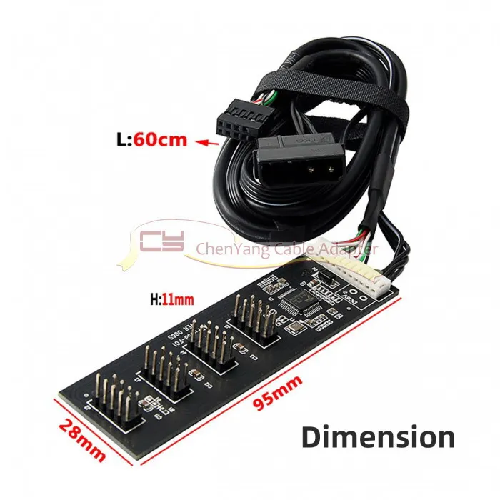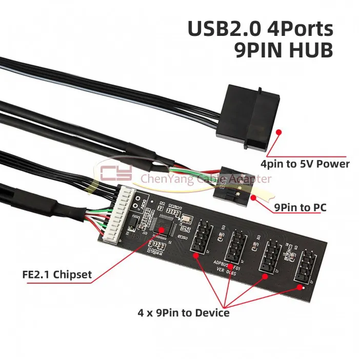 USB 2,0 9pin 10pin Header 1 a 4 Hembra Splitter Cable de extensión HUB con IDE 5V Conector de alimentación Adaptador Puerto Multilier