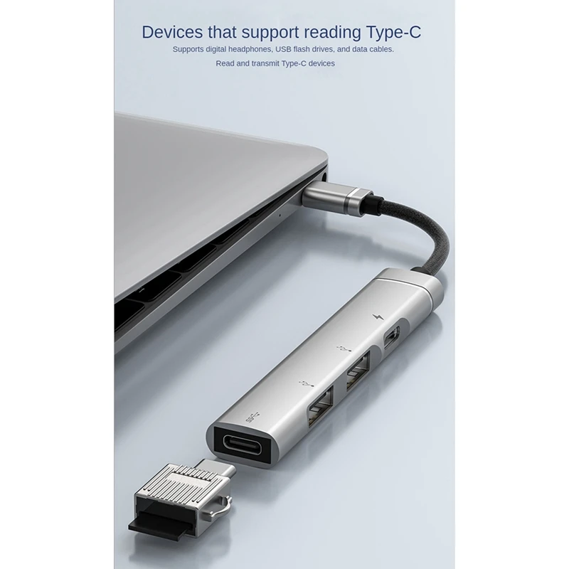1. Divisor de cuatro puertos Tipo-C + Hub, pequeño y portátil, fácil de expandir, transmisión Flash de expansión multipuerto, una variedad de dispositivos al mismo tiempo