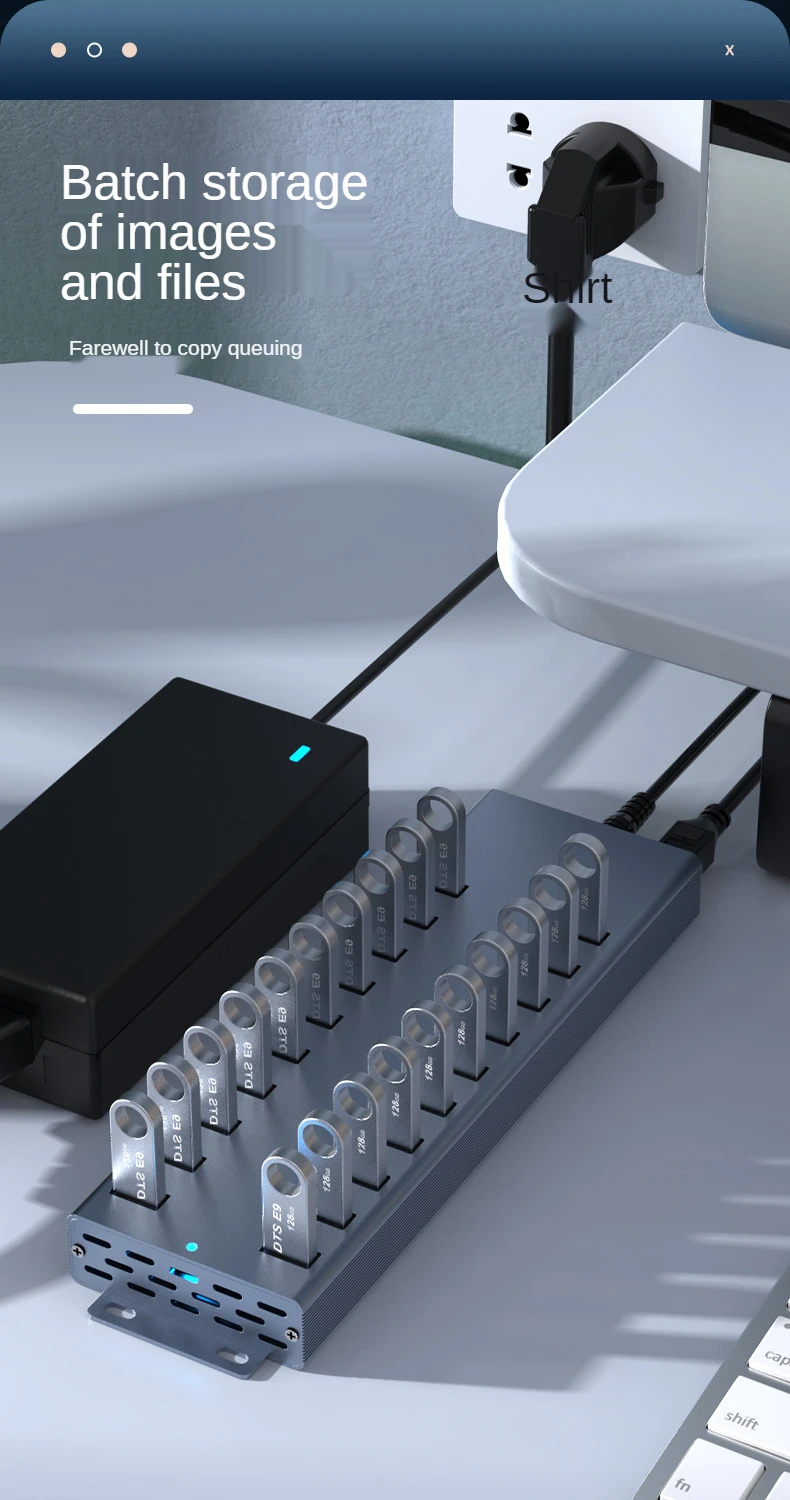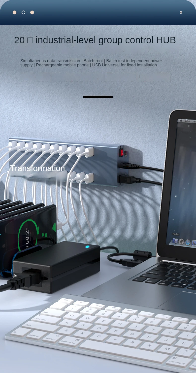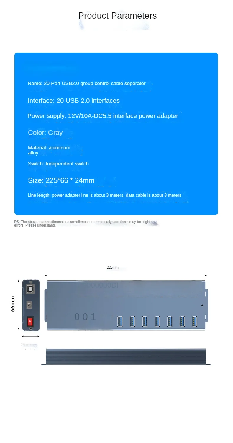 Comprar Concentrador de energía externa con 20 puertos USB 2,0, puerto de carga BC1.2 de supervelocidad, interruptor divisor para PC Industrial, Mac, tableta y portátil