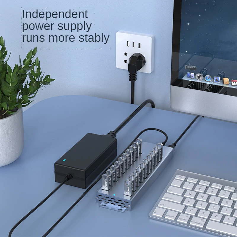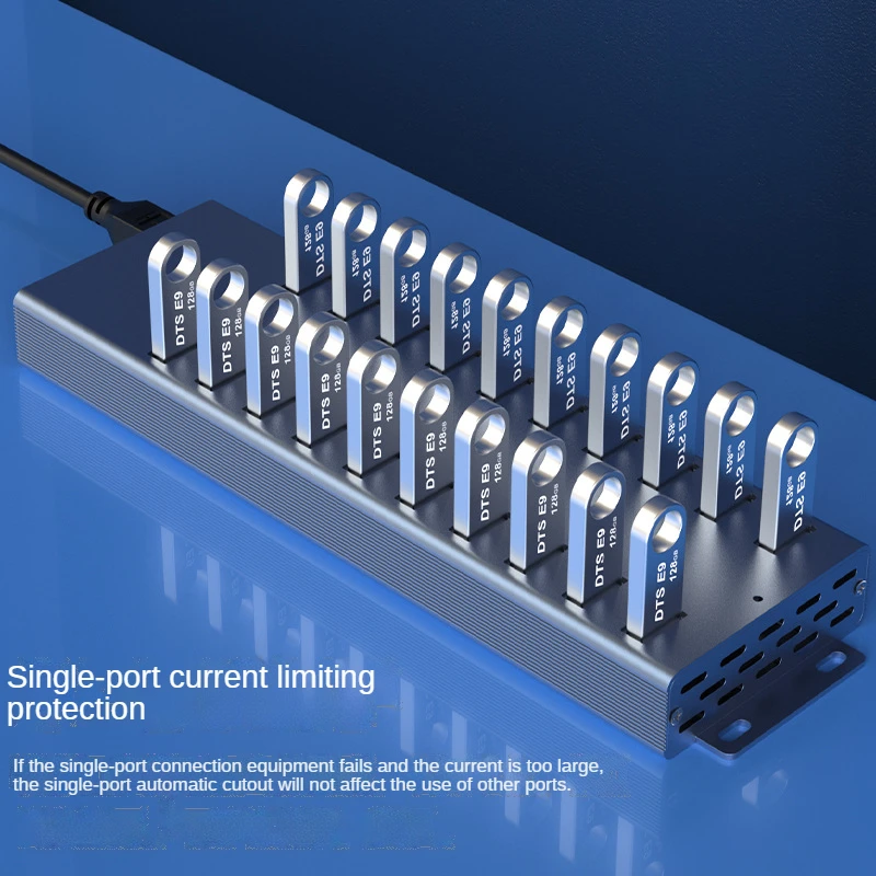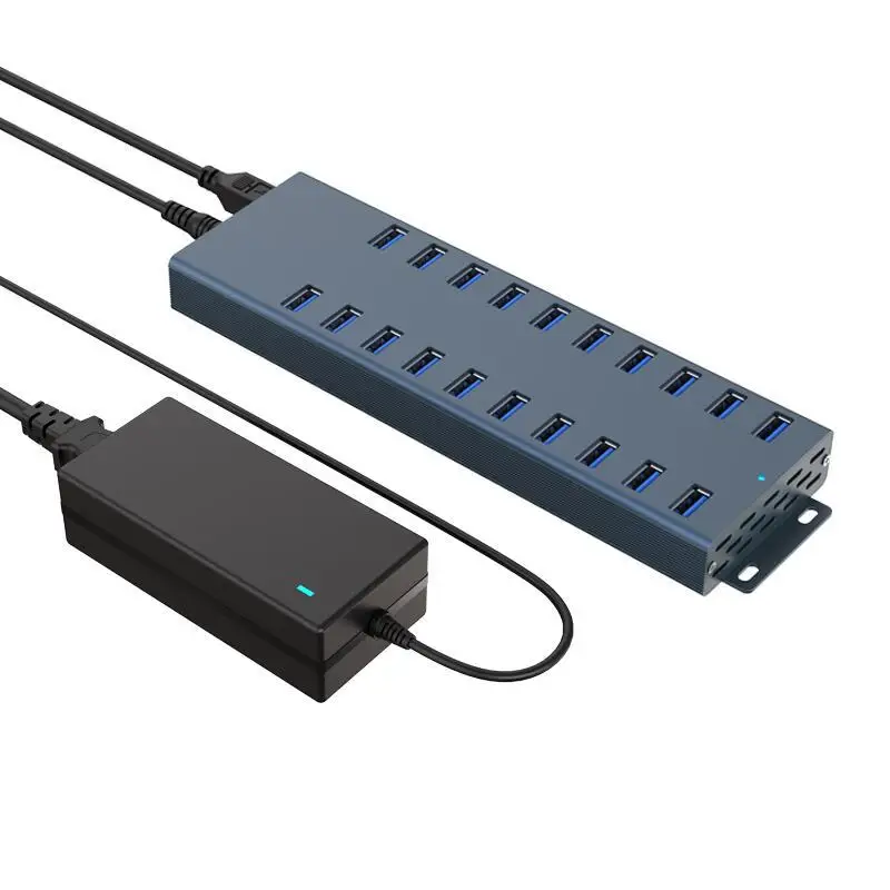 Comprar Concentrador de energía externa con 20 puertos USB 2,0, puerto de carga BC1.2 de supervelocidad, interruptor divisor para PC Industrial, Mac, tableta y portátil