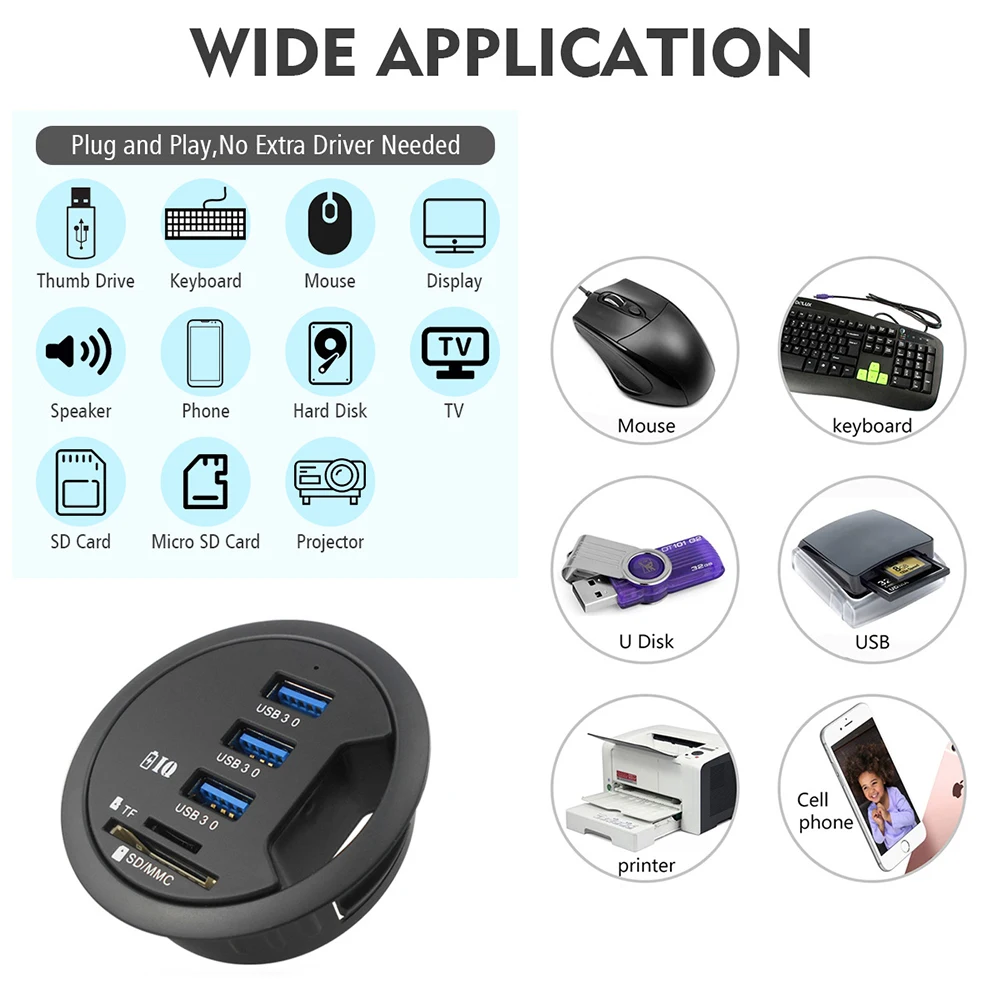 Comprar Concentrador de escritorio USB 3,0 tipo C, adaptador TF/SD MCC para PC de escritorio, montaje en escritorio, Cable divisor USB 3,0, longitud de 80cm