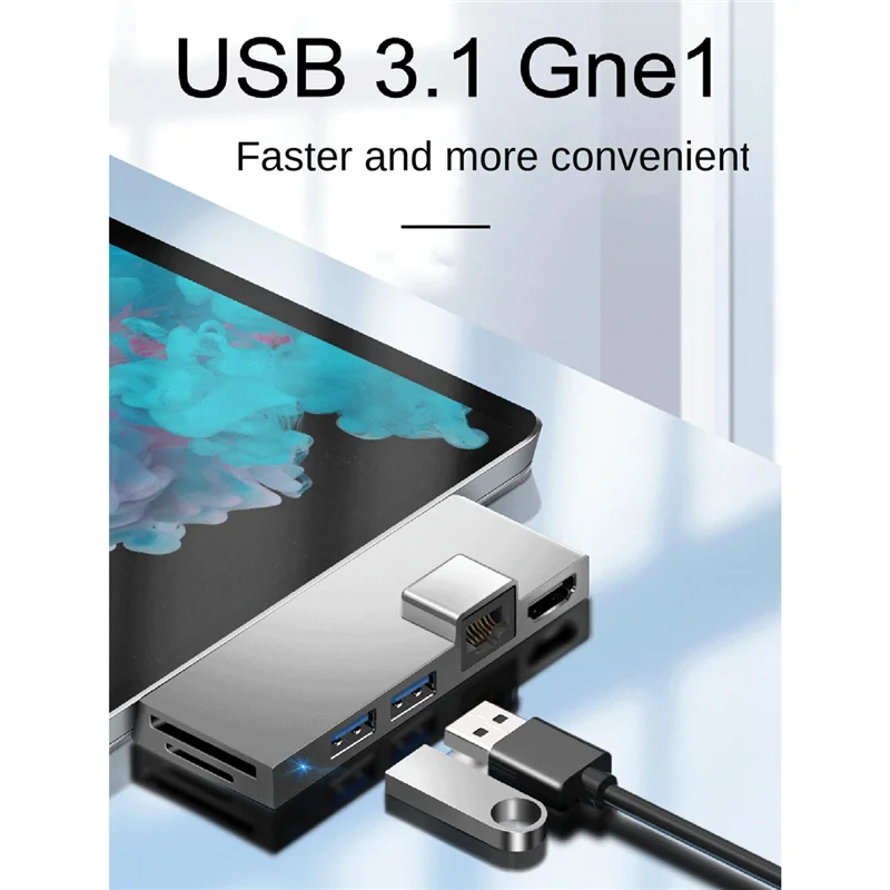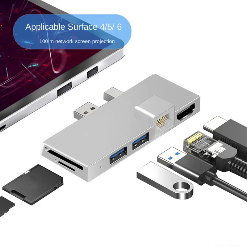 Comprar Concentrador de estación de acoplamiento para Surface Pro 4 5 6, lector de tarjetas TF Compatible con HDMI 4K, Gigabit Ethernet, 2 USB 3,1 Gen 1 puerto A
