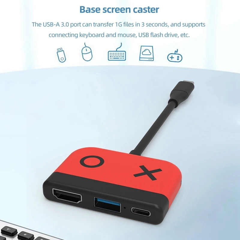 Comprar Concentrador de interruptor 3 en 1, estación de acoplamiento con USB 3,0, tipo C a pantalla HD, convertidor de proyector para interruptor/interruptor OLED