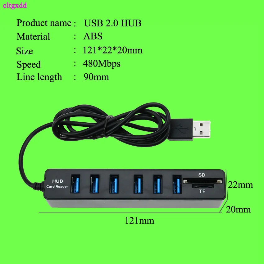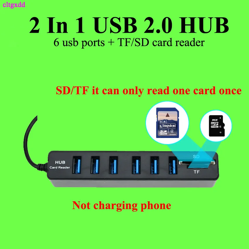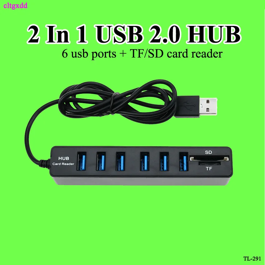 Comprar Concentrador de puertos USB 2,0 de alta velocidad, divisor Multi USB 2 en 1 2,0 Hab, concentrador múltiple USB 3,0, lector de tarjetas SD/TF para PC y portátil