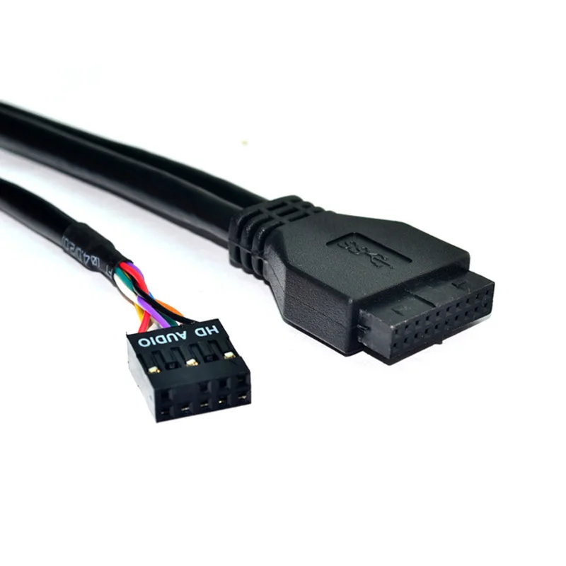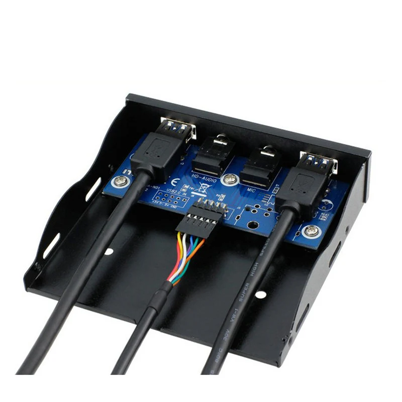 3,5 "20 pines a 2 puertos USB 3,0 HUB + HD Audio PC Floppy Expansion Panel frontal Rack para computadora PC con cable de audio 9PIN-9PIN NUEVO