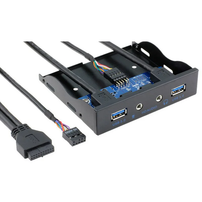 3,5 "20 pines a 2 puertos USB 3,0 HUB + HD Audio PC Floppy Expansion Panel frontal Rack para computadora PC con cable de audio 9PIN-9PIN NUEVO
