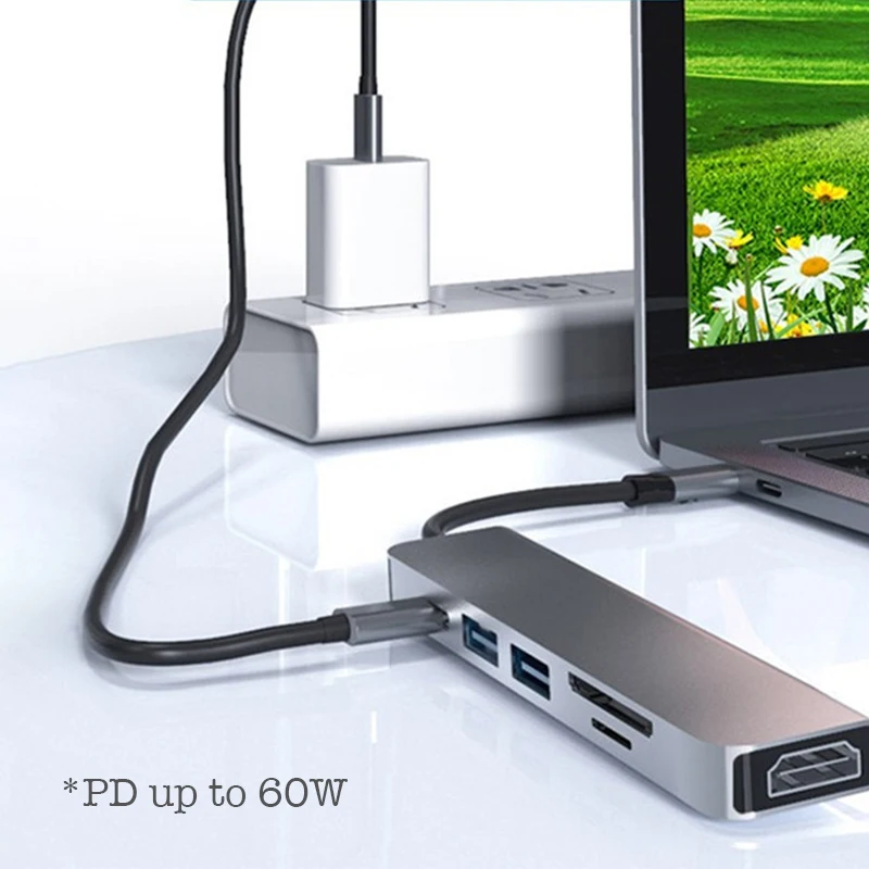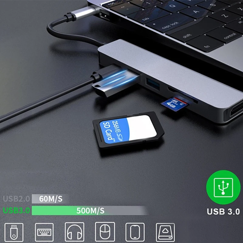 Comprar Concentrador de red para ordenador portátil, adaptador Mini de datos para Macbook Air Pro M1, USB C 3,1, compatible con HDMI, 4K, TF, SD, USB 3,0