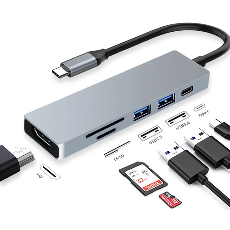 USB C 3,1 Laptop Hub Tipo C a HDMI-compatible 4K TF Lector de tarjetas SD USB3.0 USB2.0 Mini adaptador de datos para Macbook Air Pro M1 Dock