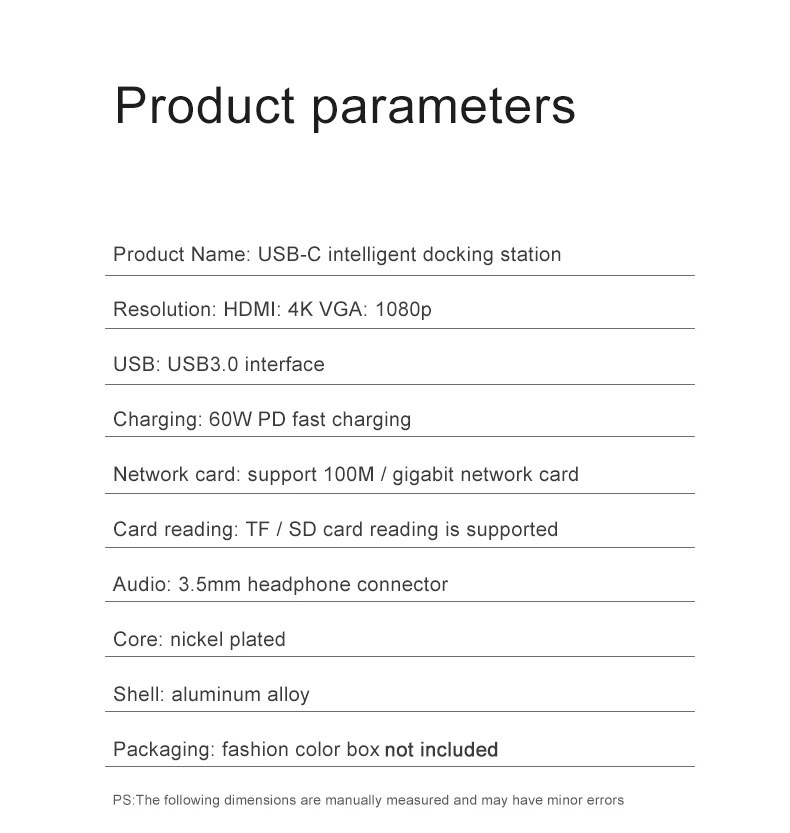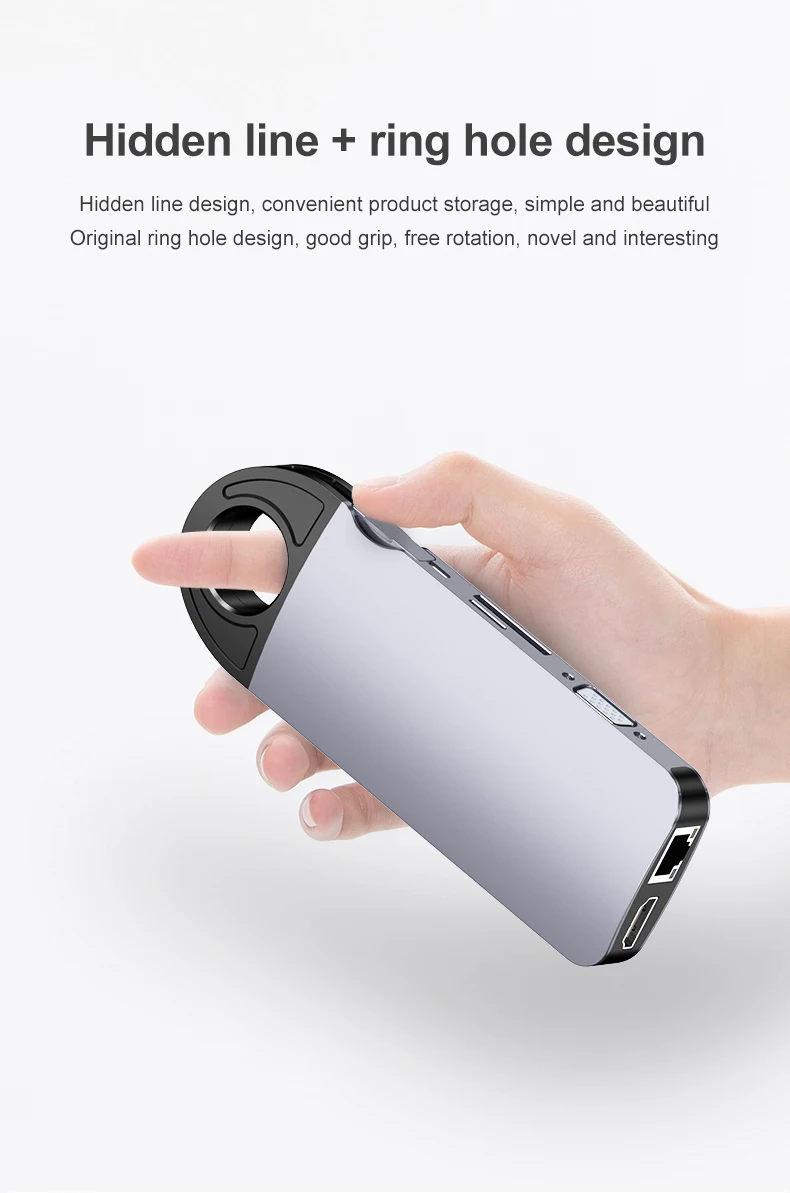 La estación de acoplamiento admite carga rápida PD, puerto Gigabit Ethernet, Sancha USB3 0, ranura para tarjeta TF / SD,