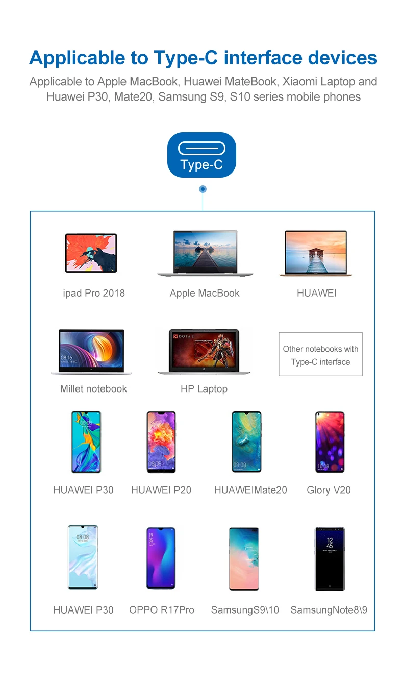 Puede funcionar para Apple Macbook, Huawei Mate Book, Xiaomi Laptop y Huawei P30 , Mate20 , fpr Samsung S9 , S10