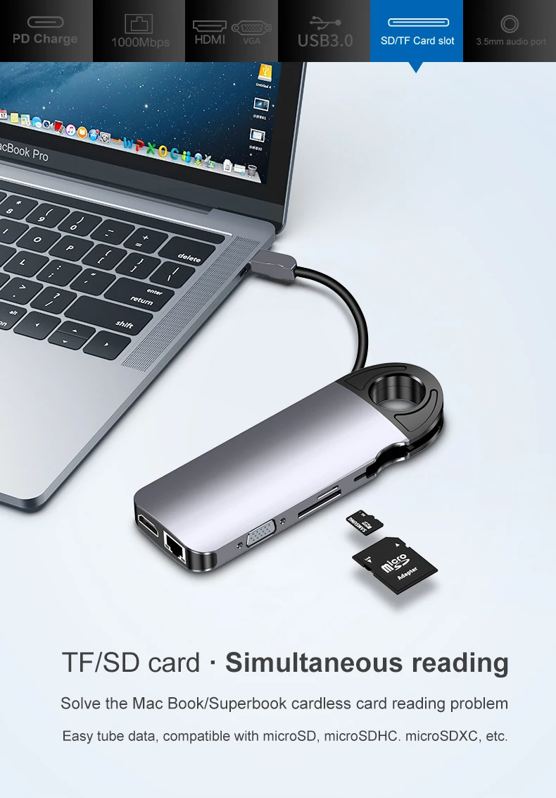 Resuelve el problema de lectura de la tarjeta inalámbrica Mac Book / Superbook. Tubos de datos fáciles, compatibles con microsd , MICROSDHC. Microsdxc, etc.