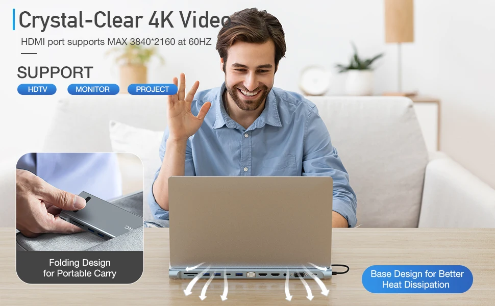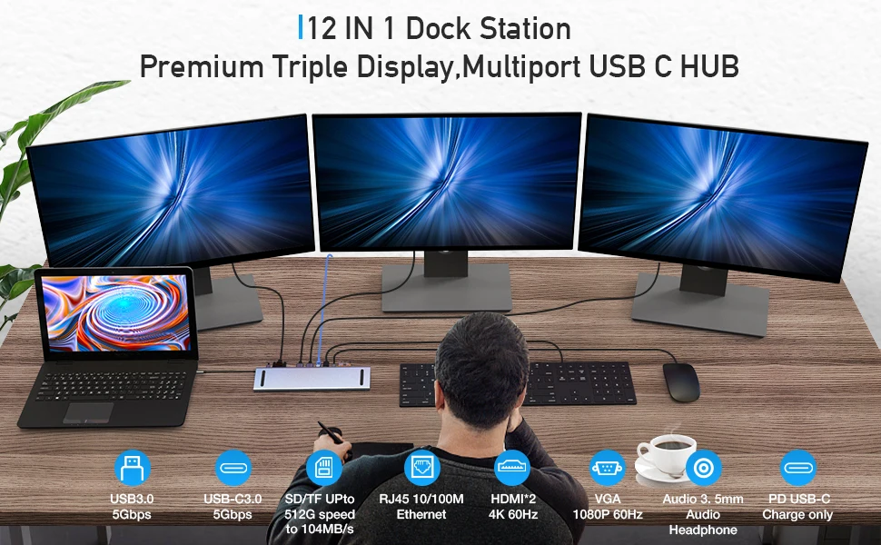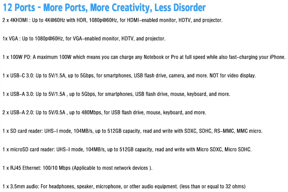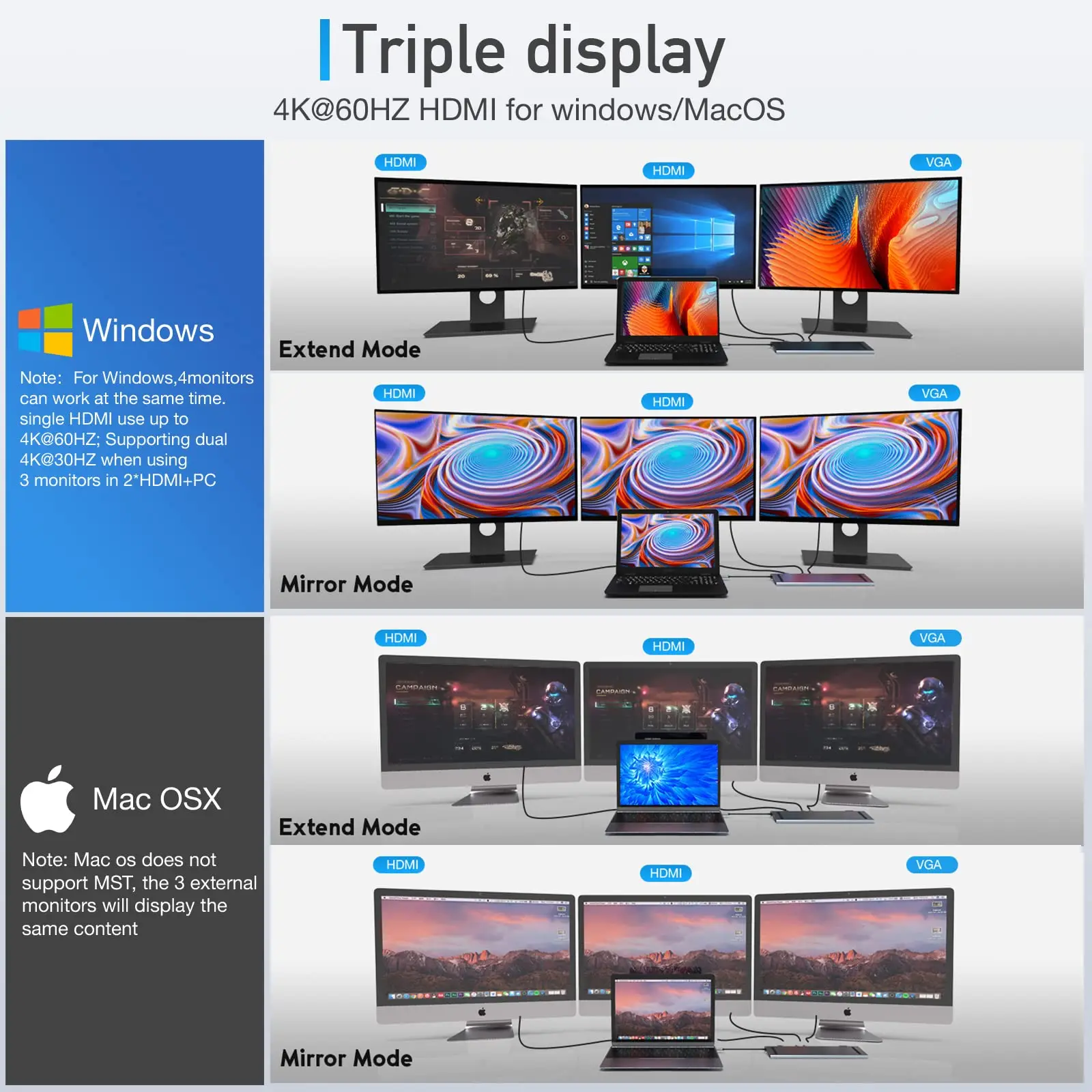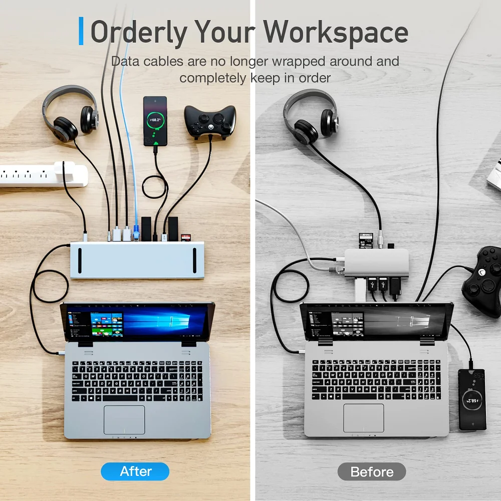 Comprar Concentrador de red USB 12 en 1, adaptador USB C con 4K, HDMI, VGA, USB-C, Thunderbolt, 3 Gigabit, Ethernet, Audio SD/TF para MacBook, estación de acoplamiento